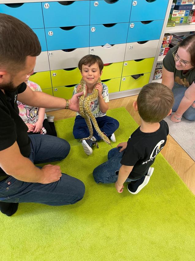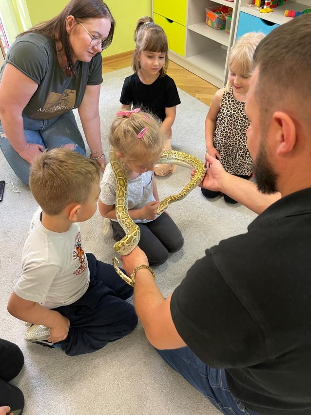 Żywa lekcja przyrody - warsztaty edukacyjne, pokaz zwierząt egzotycznych w grupie Wiewiórek