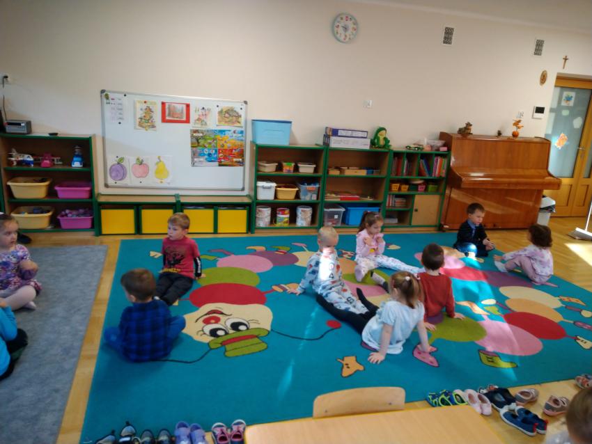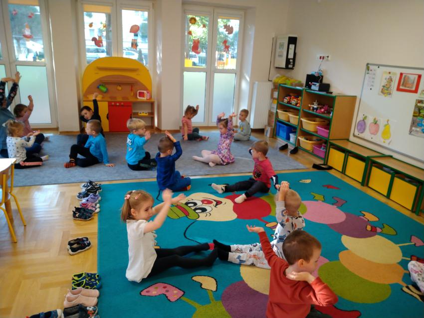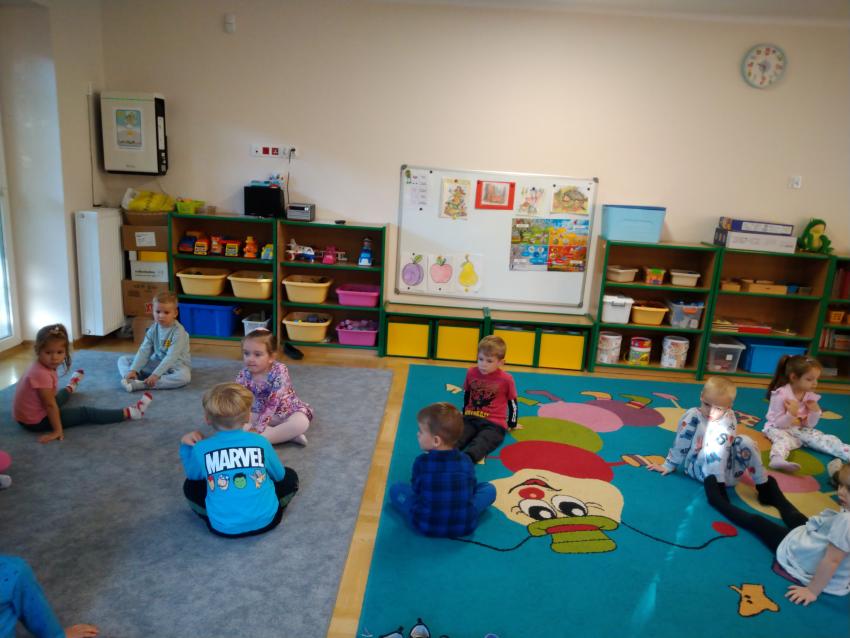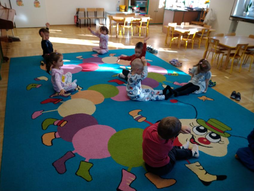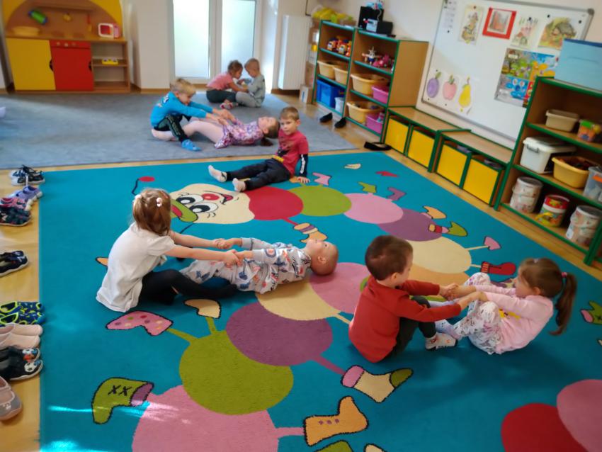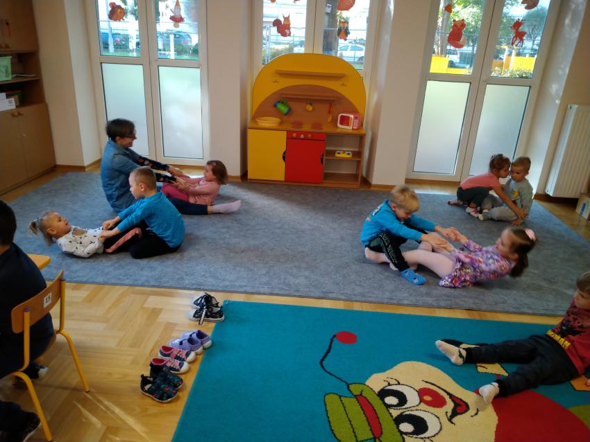 Zajęcia z p. Grażynką pt. Stymulacja rozwoju ruchowego i somatognozi w grupie Żabki