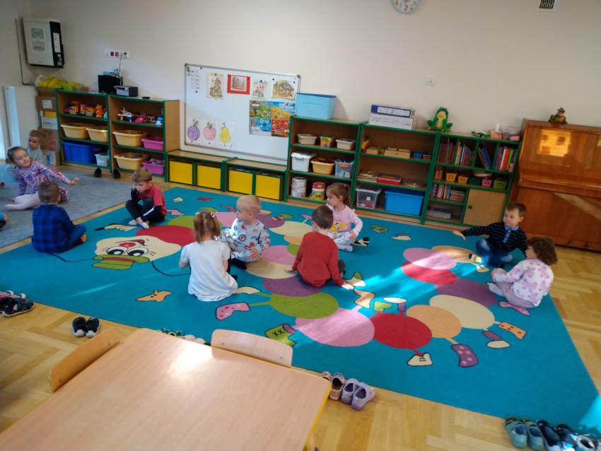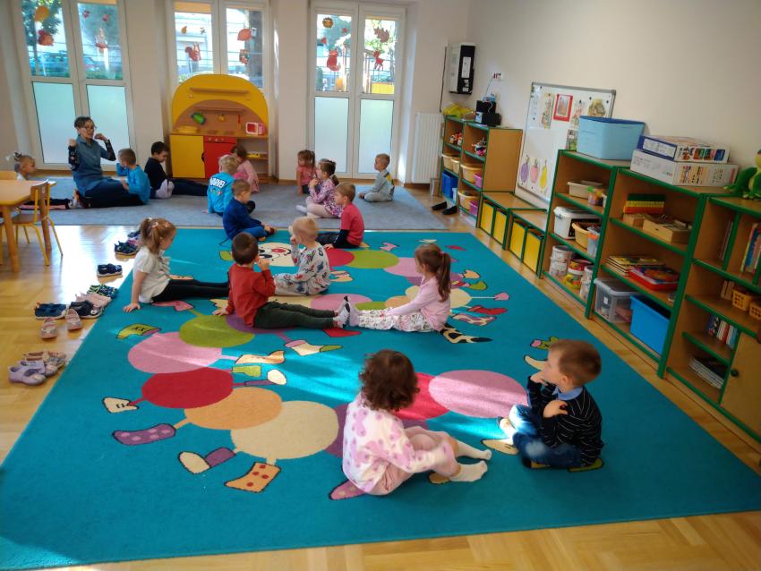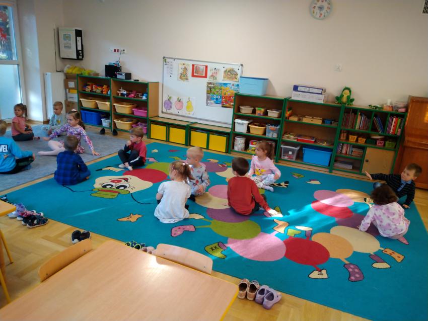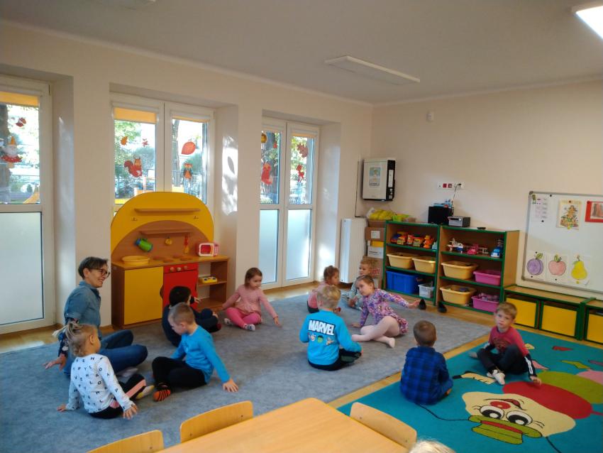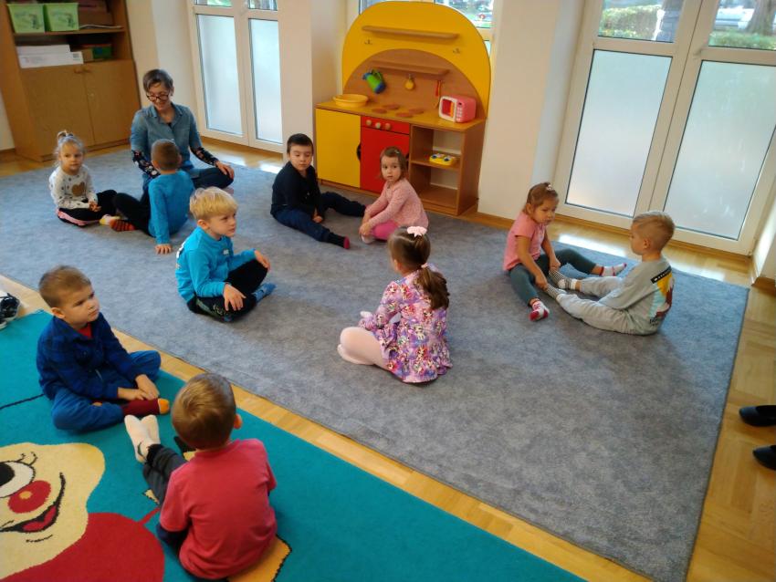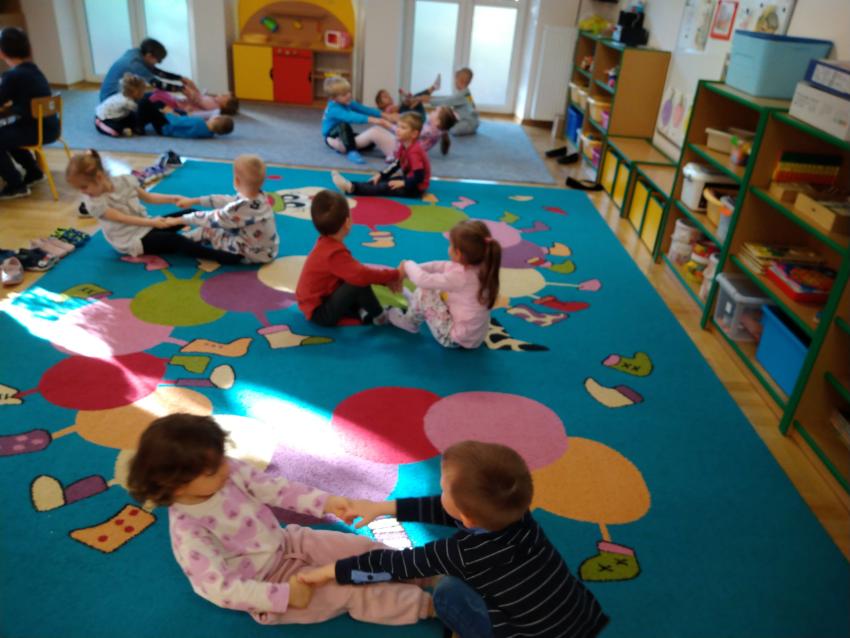 Zajęcia z p. Grażynką pt. Stymulacja rozwoju ruchowego i somatognozi w grupie Żabki