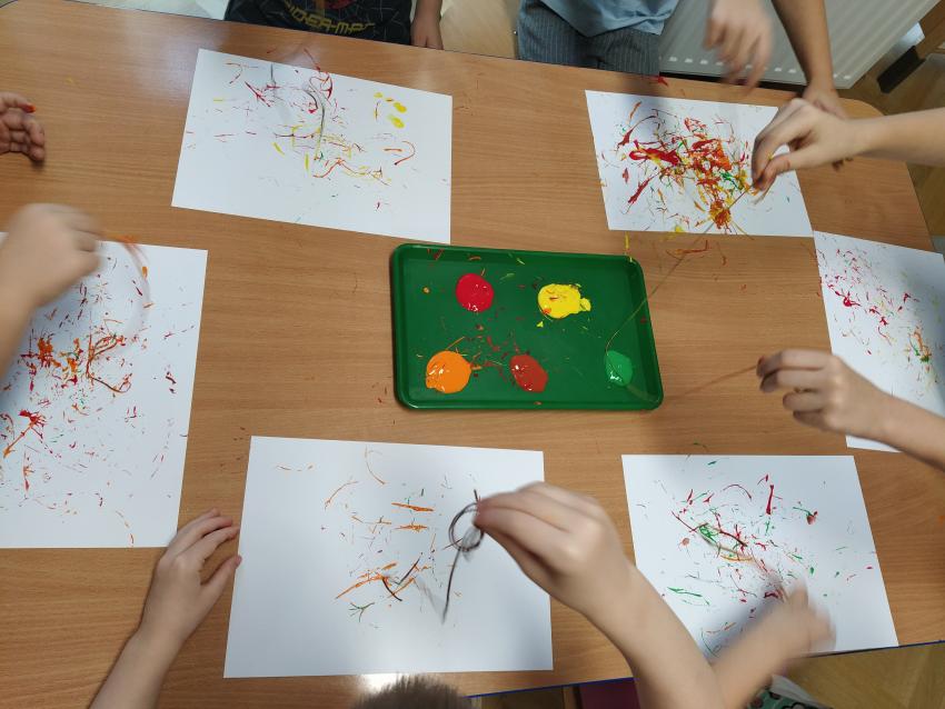 Wiewiórki malują nitką