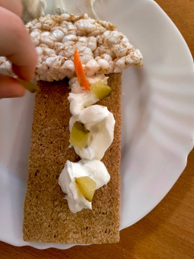 Tworzenie według własnego pomysłu deseru z serka i warzyw.