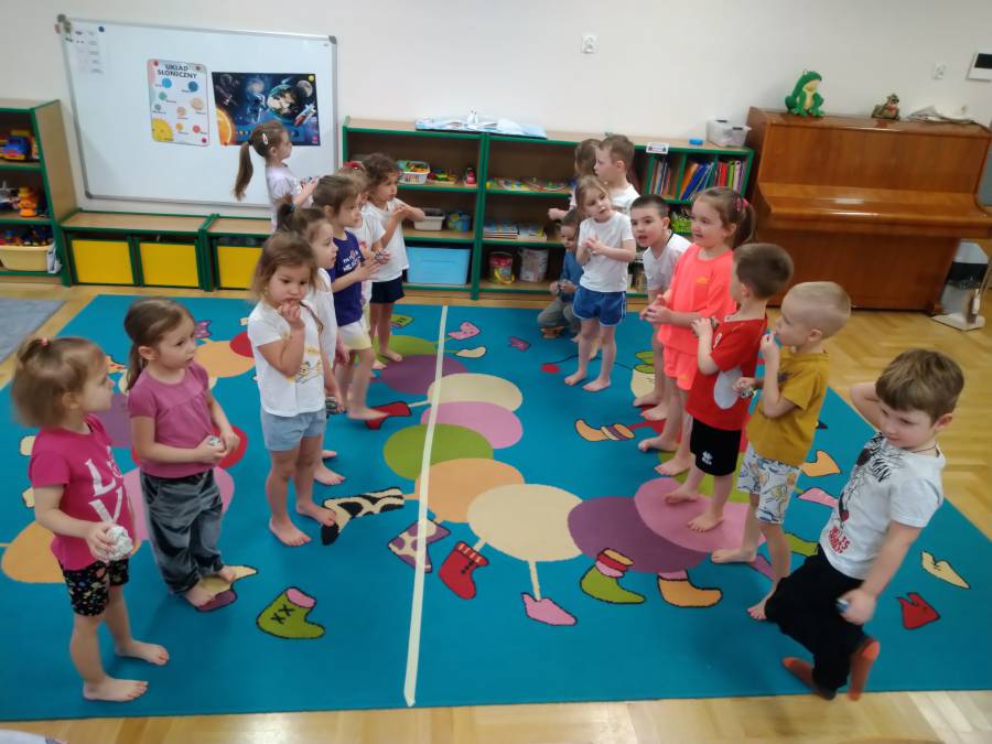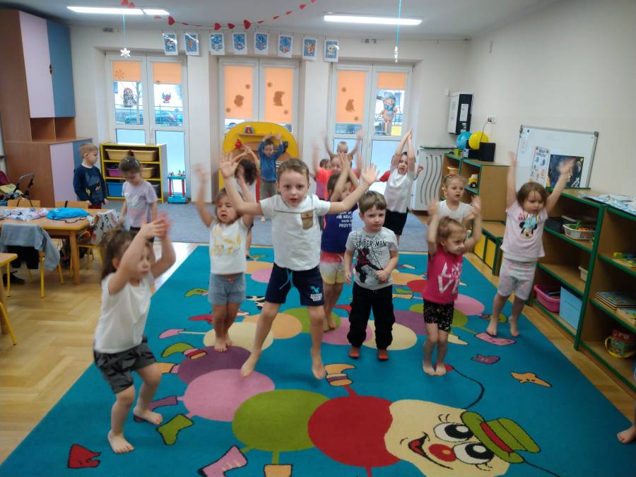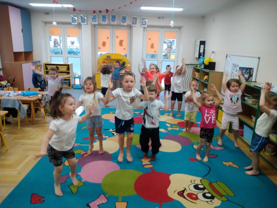 Żabki zrealizowały kolejne zadania z projektu edukacyjnego. Na początku przedszkolaki wykonały rozgrzewkę a następnie przeszły do wykonania zadań przeznaczonych na miesiąc luty.