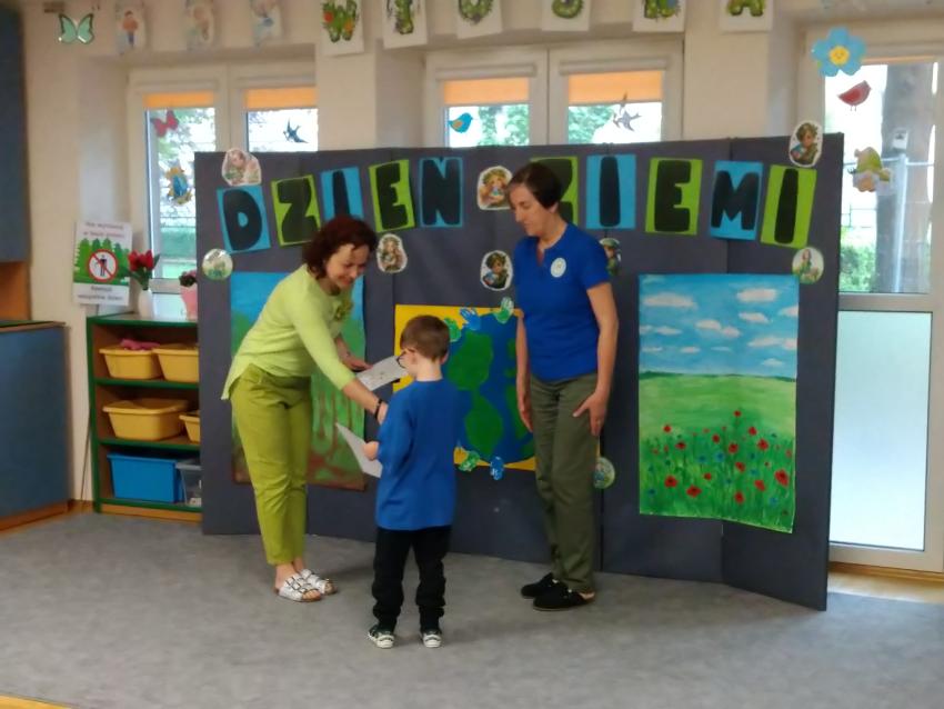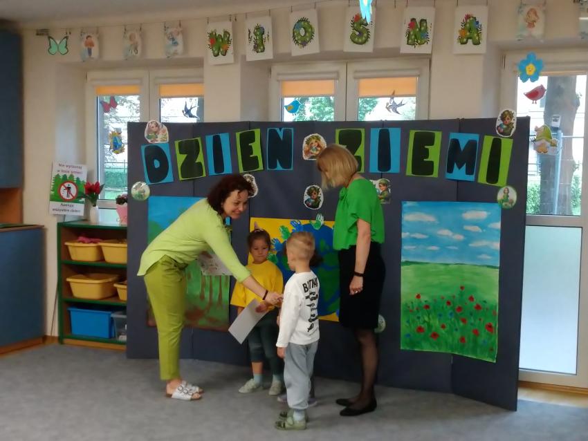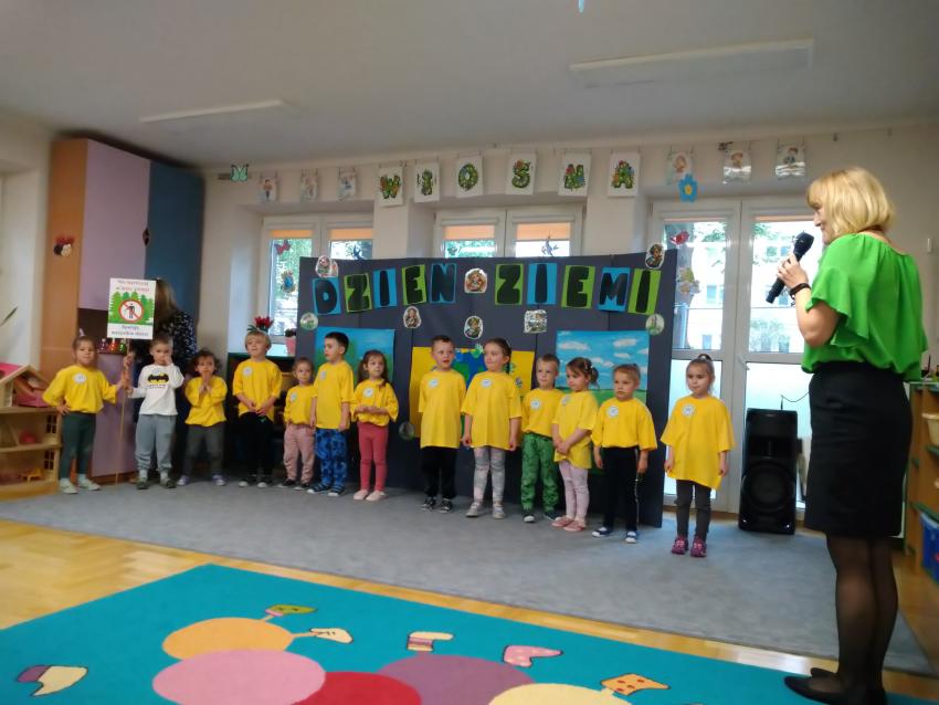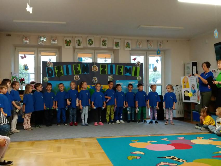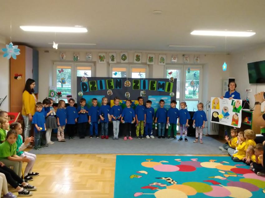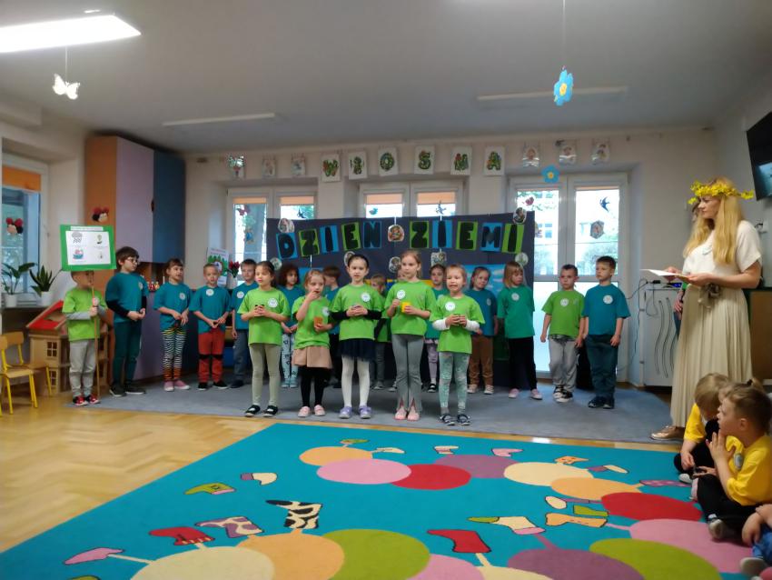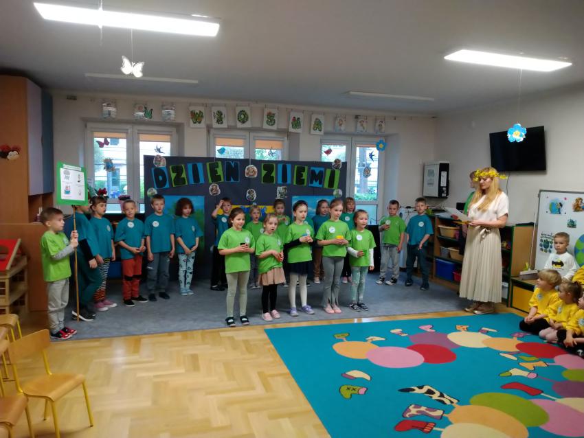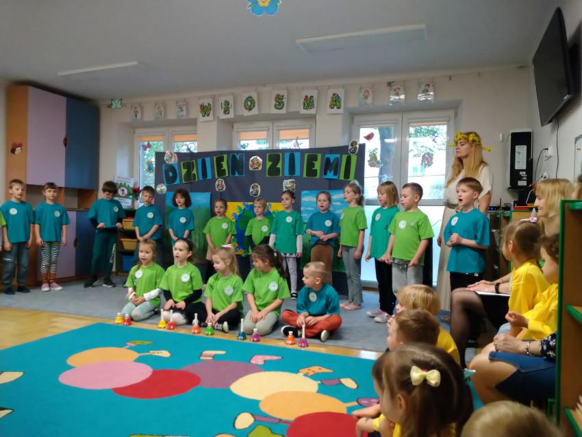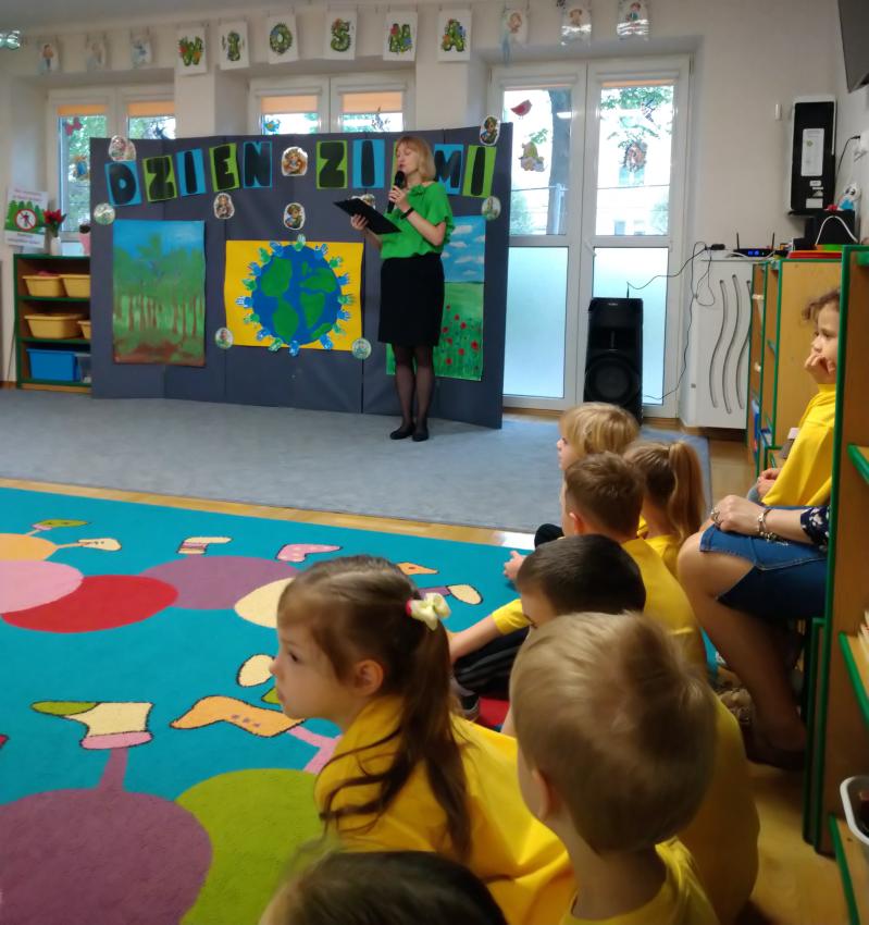Dzień Ziemi w naszym przedszkolu wpisał się na stałe w repertuar ?Kalendarza Imprez? przedszkola ale także stał się coroczną akcją, której celem jest promocja ekologii. Przedszkolaki dowiedziały się, jak dbać o środowisko i otaczającą nas przyrodę. Dzieci miały okazję usłyszeć o tym, że Ziemia jest jedyną zamieszkaną planetą i jednocześnie naszym domem, więc musimy o nią dbać jak najlepiej potrafimy np. poprzez segregację śmieci a także ich recykling. Oczywiście nie zabrakło pięknych występów o tematyce ekologicznej oraz złożenie uroczystego ŚLUBOWANIA, gdzie dzieci deklarowały iż będą prawdziwymi strażnikami przyrody. Zwieńczeniem zdobytych wiadomości było wykonanie zadań ekologicznych przygotowanych dla każdej grupy. Wszystkim dzieciom GRATULUJEMY za perfekcyjne wykonanie zadań.