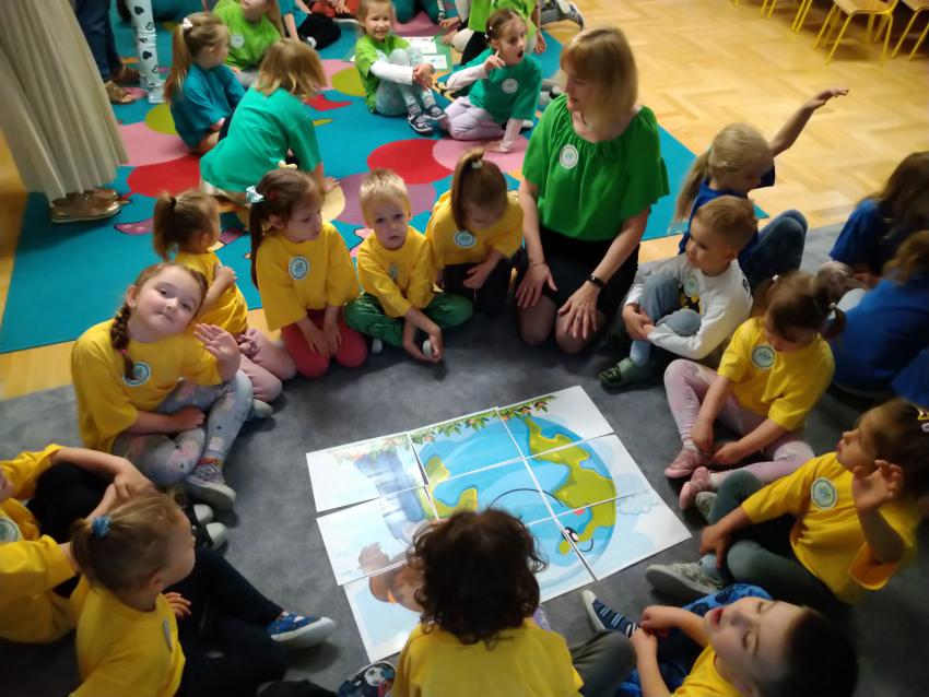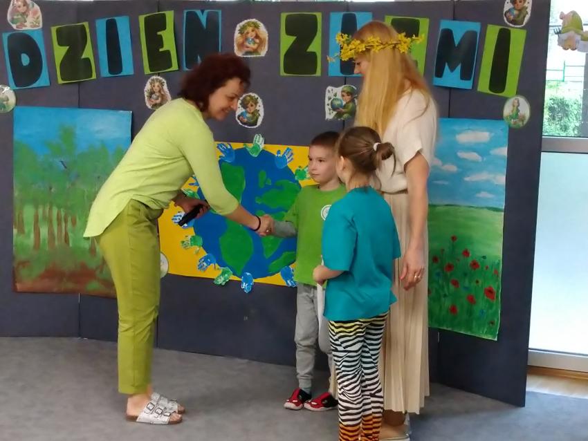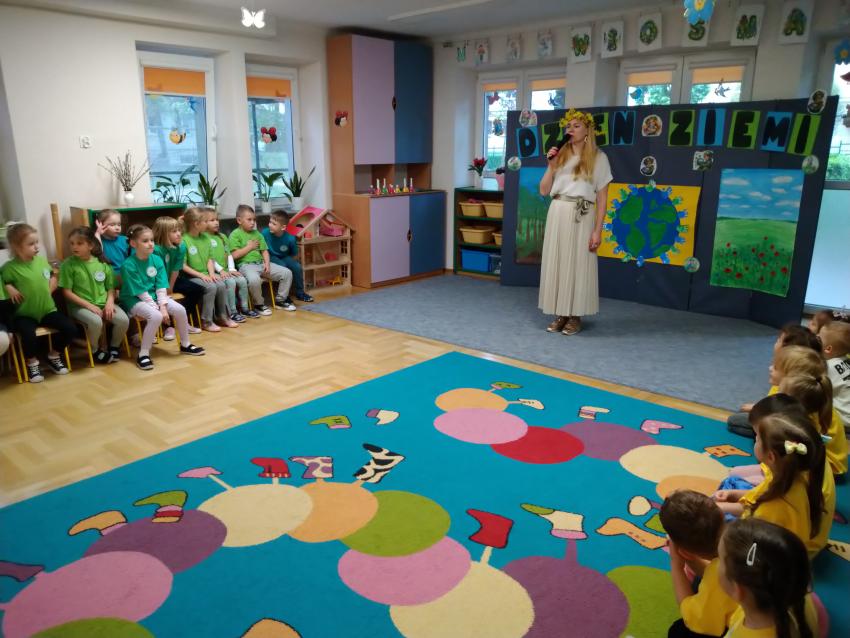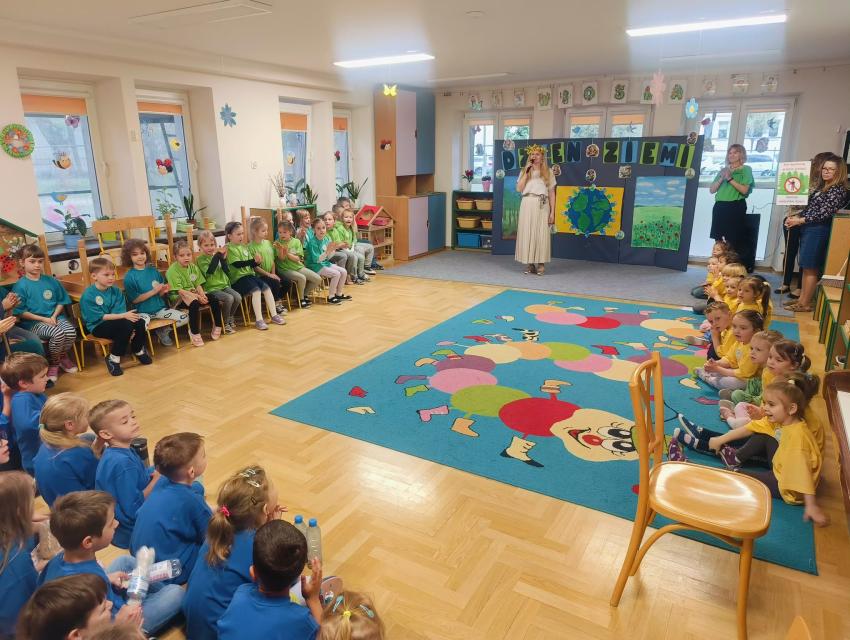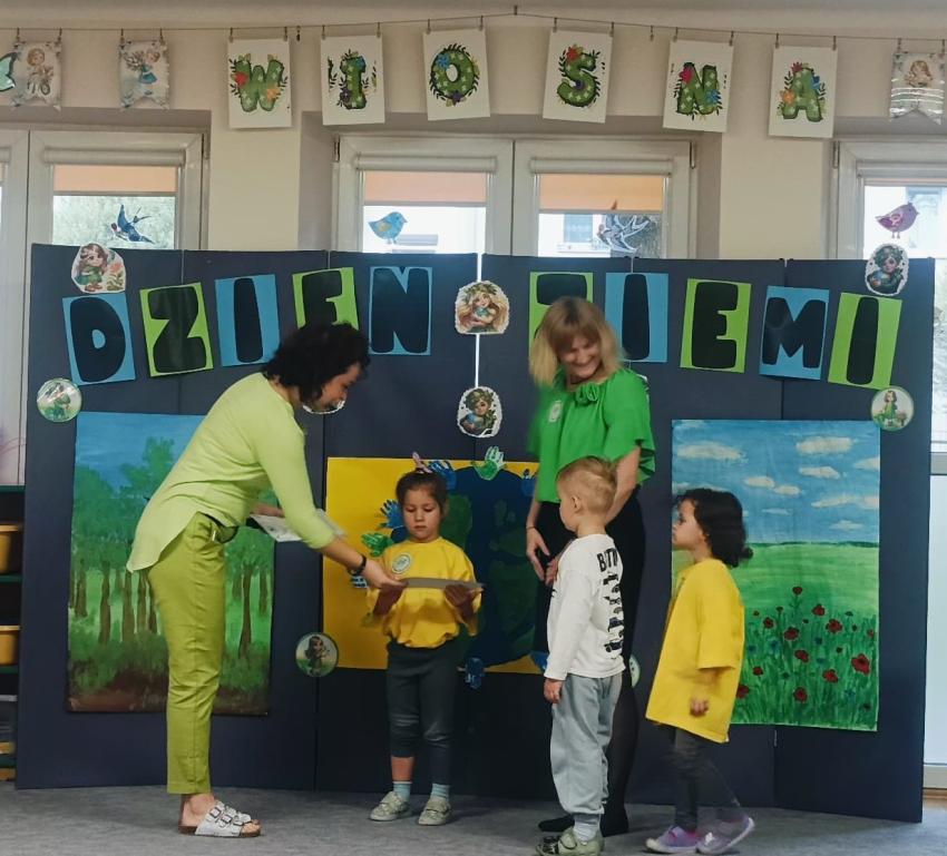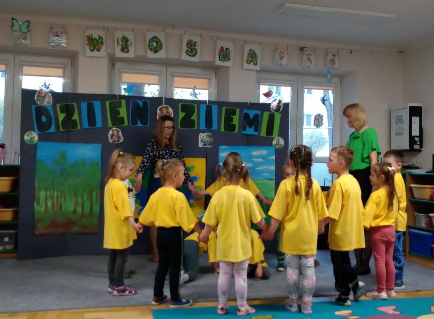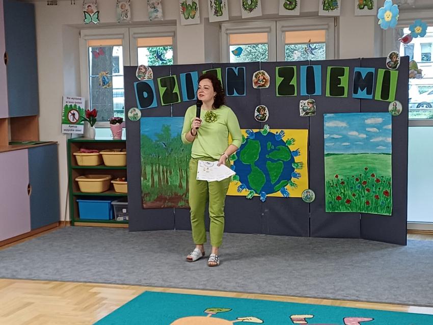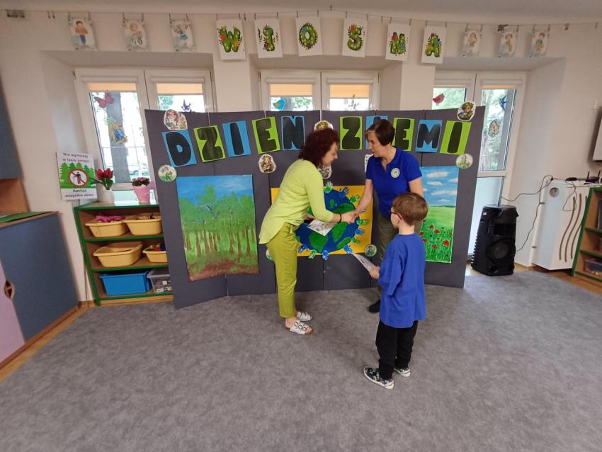 Dzień Ziemi w naszym przedszkolu wpisał się na stałe w repertuar ?Kalendarza Imprez? przedszkola ale także stał się coroczną akcją, której celem jest promocja ekologii. Przedszkolaki dowiedziały się, jak dbać o środowisko i otaczającą nas przyrodę. Dzieci miały okazję usłyszeć o tym, że Ziemia jest jedyną zamieszkaną planetą i jednocześnie naszym domem, więc musimy o nią dbać jak najlepiej potrafimy np. poprzez segregację śmieci a także ich recykling. Oczywiście nie zabrakło pięknych występów o tematyce ekologicznej oraz złożenie uroczystego ŚLUBOWANIA, gdzie dzieci deklarowały iż będą prawdziwymi strażnikami przyrody. Zwieńczeniem zdobytych wiadomości było wykonanie zadań ekologicznych przygotowanych dla każdej grupy. Wszystkim dzieciom GRATULUJEMY za perfekcyjne wykonanie zadań.