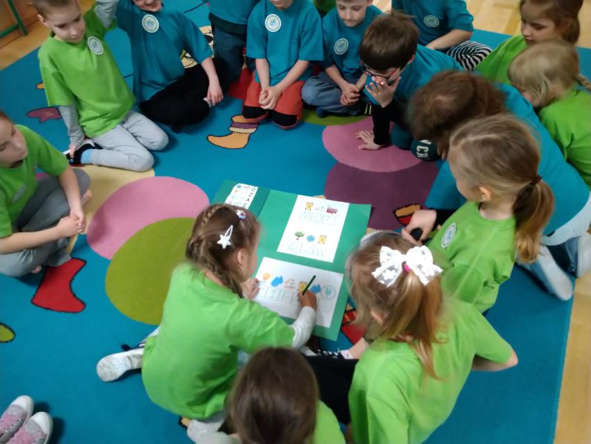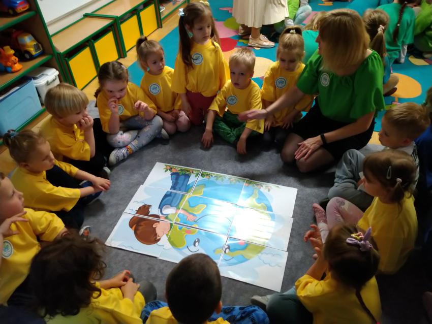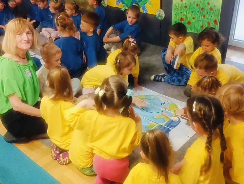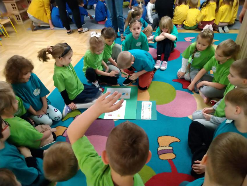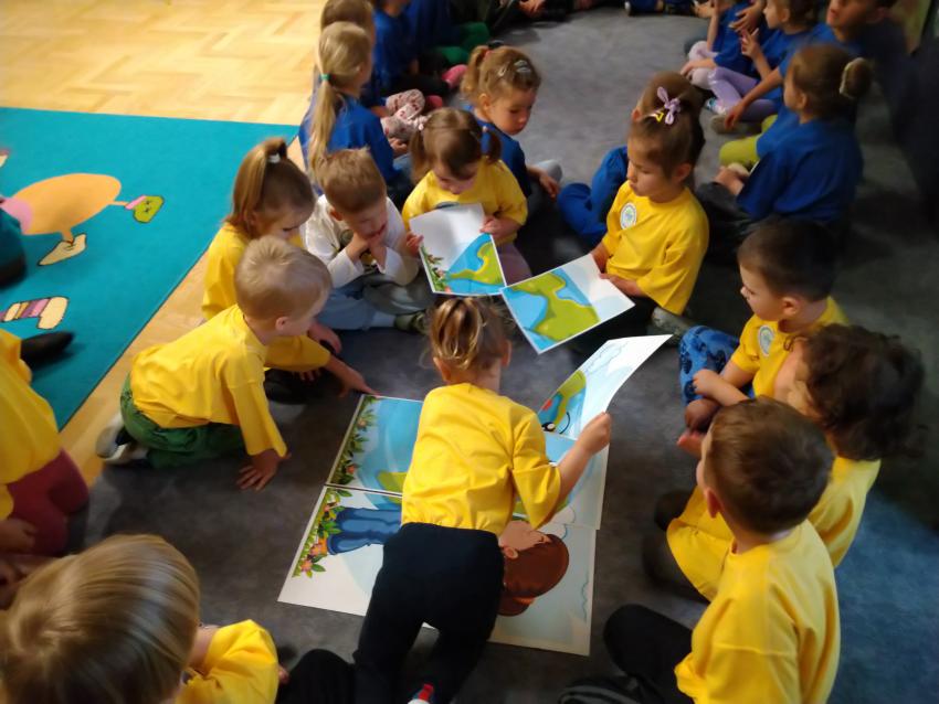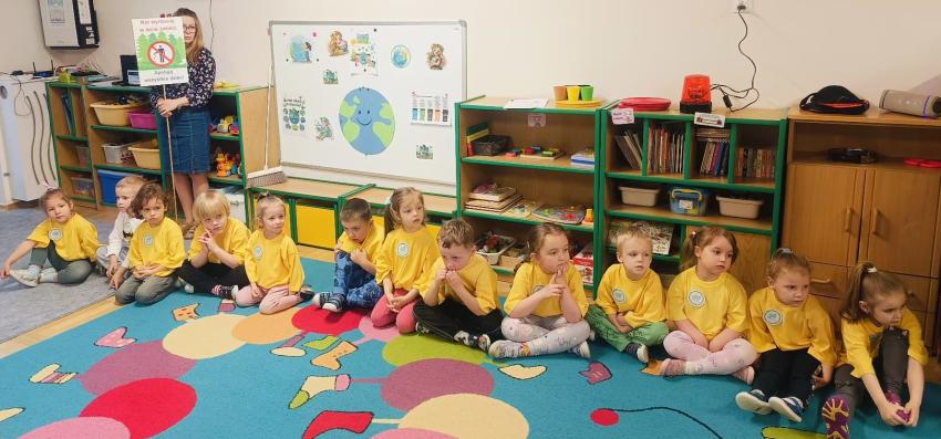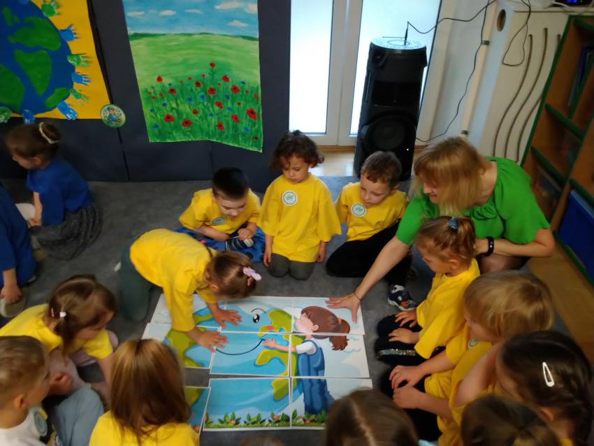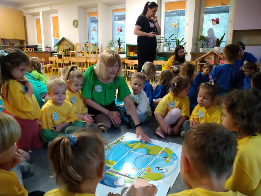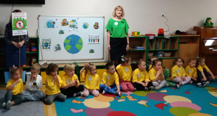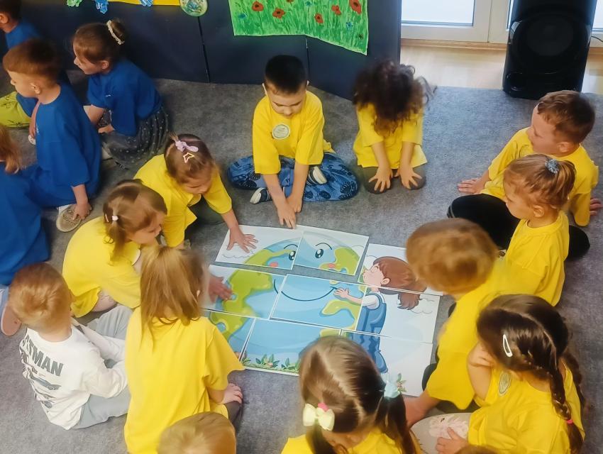 Dzień Ziemi w naszym przedszkolu wpisał się na stałe w repertuar ?Kalendarza Imprez? przedszkola ale także stał się coroczną akcją, której celem jest promocja ekologii. Przedszkolaki dowiedziały się, jak dbać o środowisko i otaczającą nas przyrodę. Dzieci miały okazję usłyszeć o tym, że Ziemia jest jedyną zamieszkaną planetą i jednocześnie naszym domem, więc musimy o nią dbać jak najlepiej potrafimy np. poprzez segregację śmieci a także ich recykling. Oczywiście nie zabrakło pięknych występów o tematyce ekologicznej oraz złożenie uroczystego ŚLUBOWANIA, gdzie dzieci deklarowały iż będą prawdziwymi strażnikami przyrody. Zwieńczeniem zdobytych wiadomości było wykonanie zadań ekologicznych przygotowanych dla każdej grupy. Wszystkim dzieciom GRATULUJEMY za perfekcyjne wykonanie zadań.