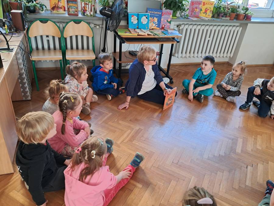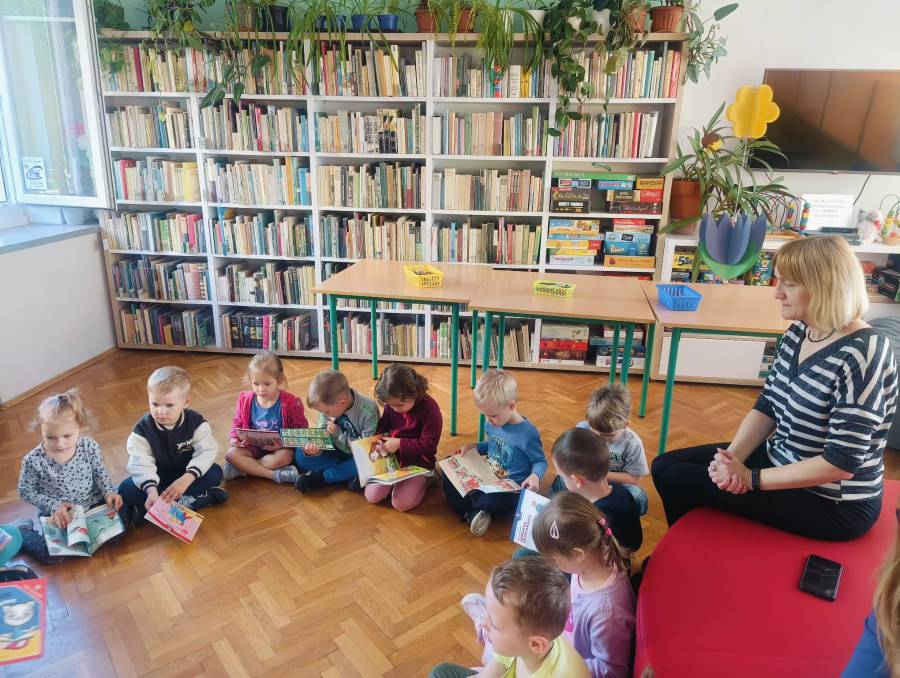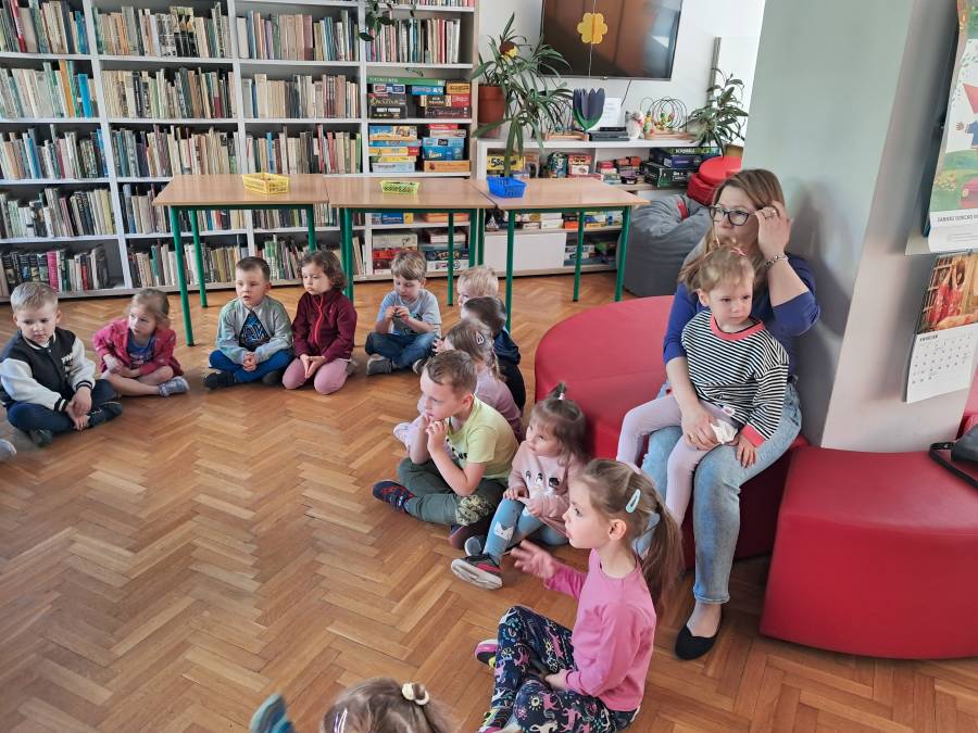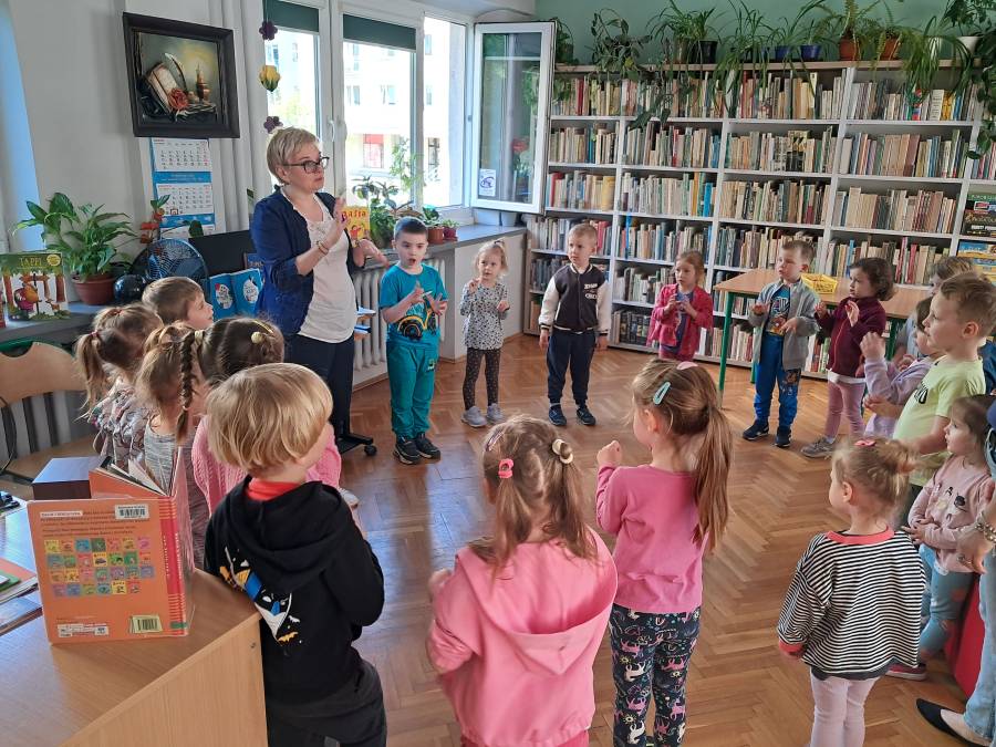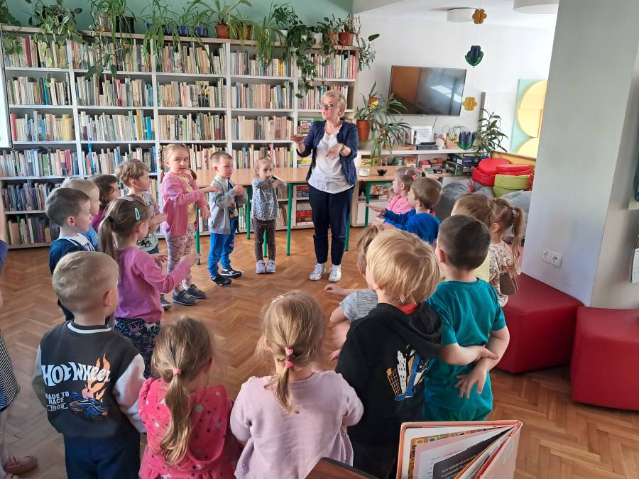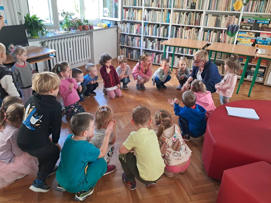 Pierwsza wizyta grupy Żabek w bibliotece