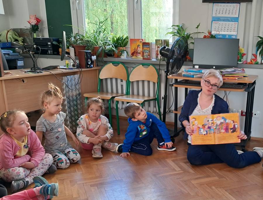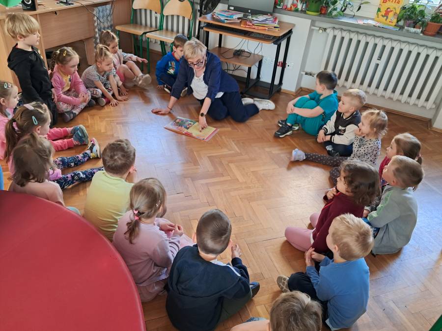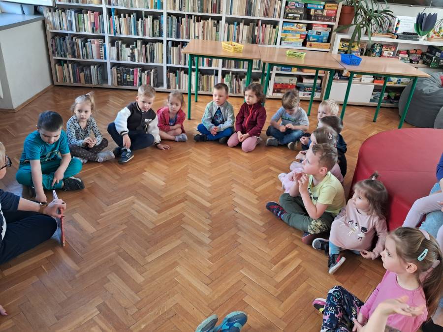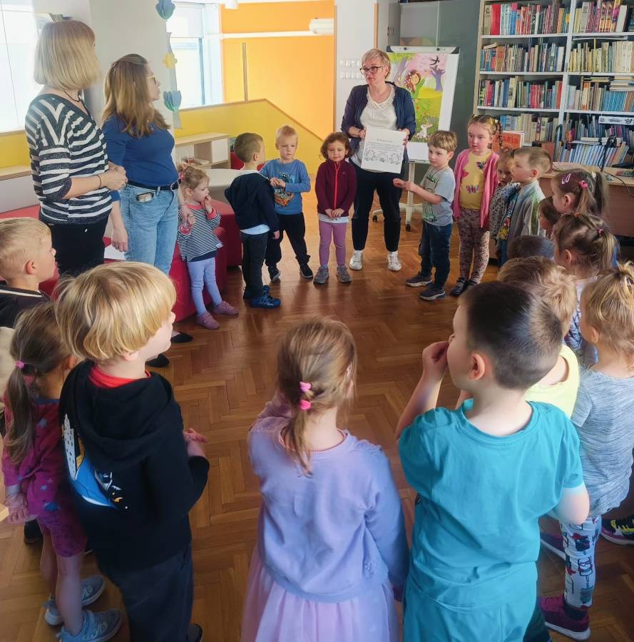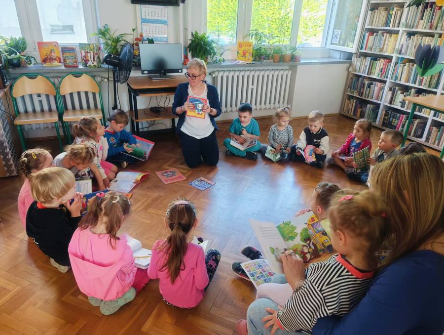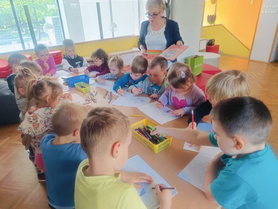 Pierwsza wizyta grupy Żabek w bibliotece
