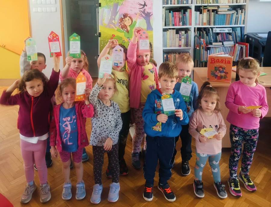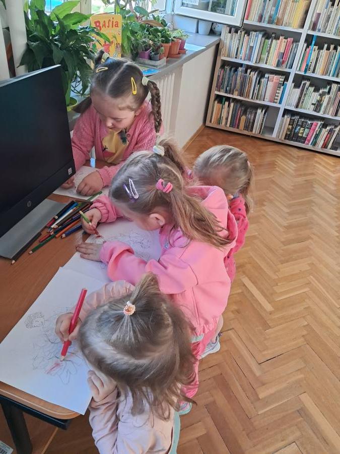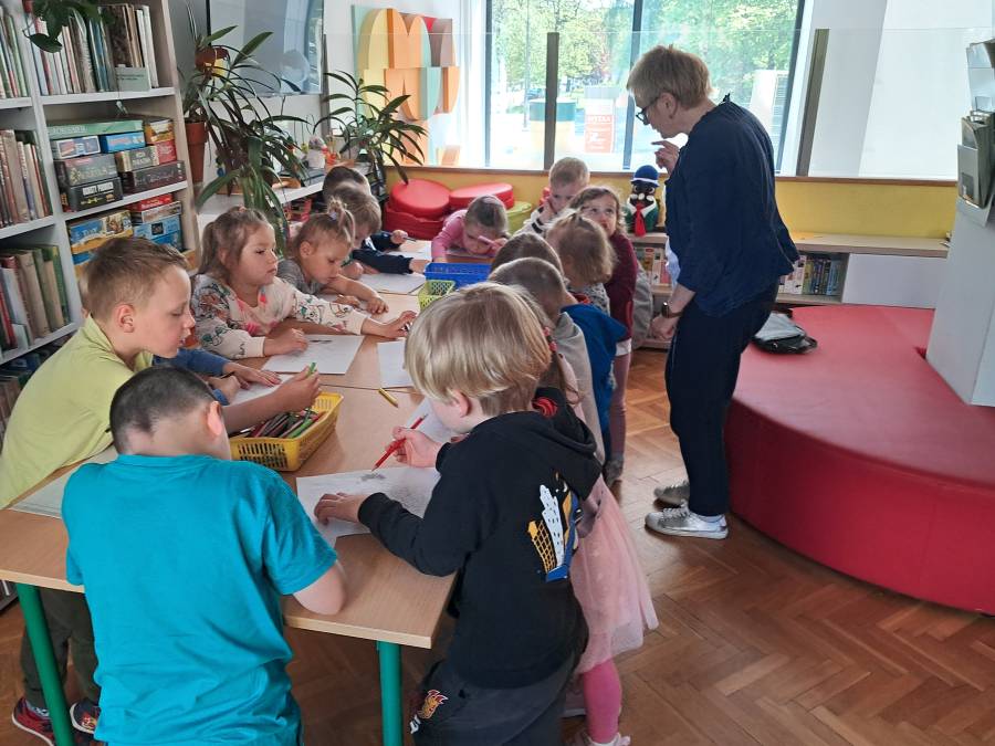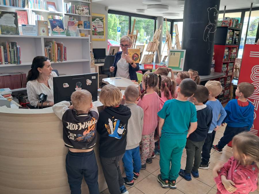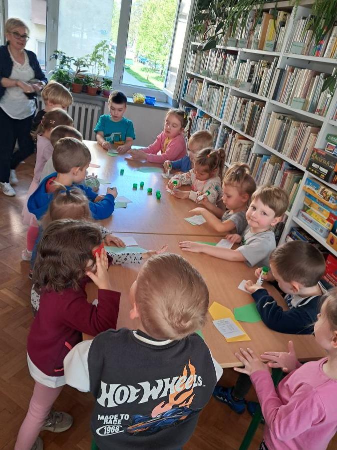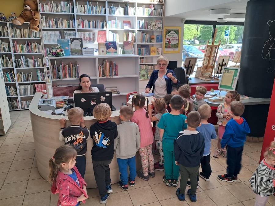 Dnia29 kwietnia, grupa Żabek uczestniczyła w spotkaniu czytelniczym w Miejskiej Bibliotece Publicznej na os Zgody 7. Tematem spotkania było zapoznanie dzieci z biblioteką. Bardzo ciepło przyjęła nas Pani Beata, która opowiadała dzieciom o tym magicznym miejscu. Przedszkolaki zobaczyły jak wygląda karta czytelnika oraz poznały zasady wypożyczania książek. Dzieci dowiedziały się, co należy zrobić, aby zostać członkiem biblioteki oraz jak należy się w niej zachować. Spotkanie w bibliotece nie mogło się odbyć bez głośnego czytania. Dzieci wysłuchały bajki pt. Basia i biblioteka, a następnie miały do wykonania zadanie plastyczne. Z dużą radością i zainteresowaniem przystąpiły do pracy, z którą znakomicie sobie poradziły. Na zakończenie spotkania Żabki przekazały pani Beacie podziękowanie za oprowadzenie po świecie książki.