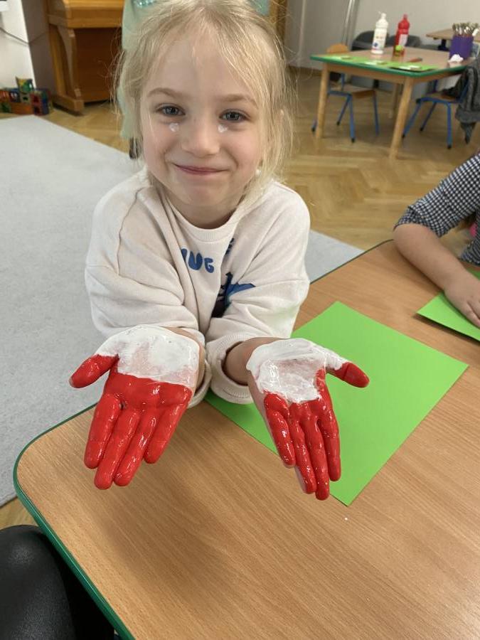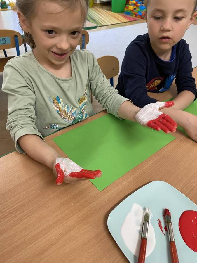 W ramach obchodów majowych świąt narodowych nasze przedszkolaki wzięły udział w wyjątkowych zajęciach plastycznych, podczas których stworzyły flagę Polski z? własnych rączek!
