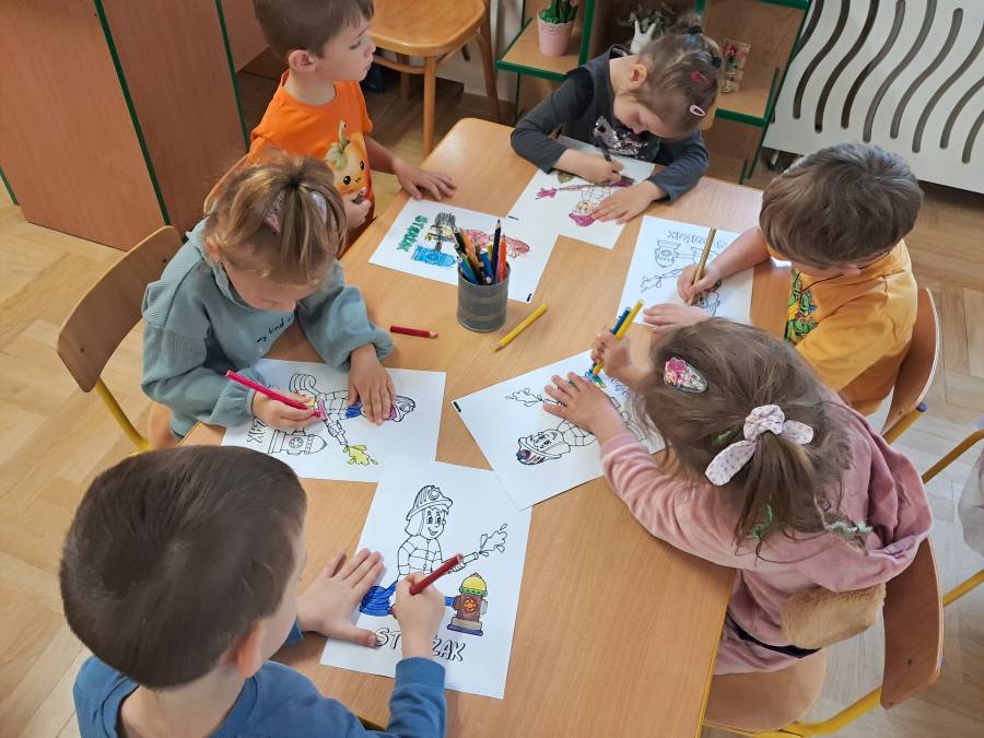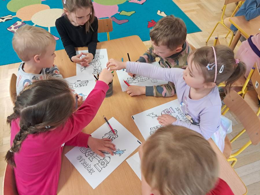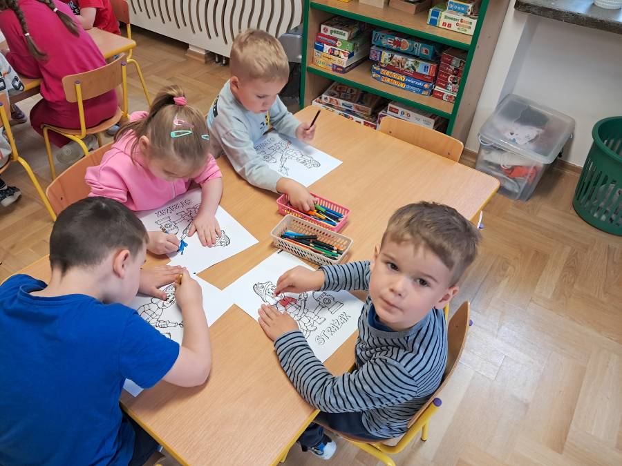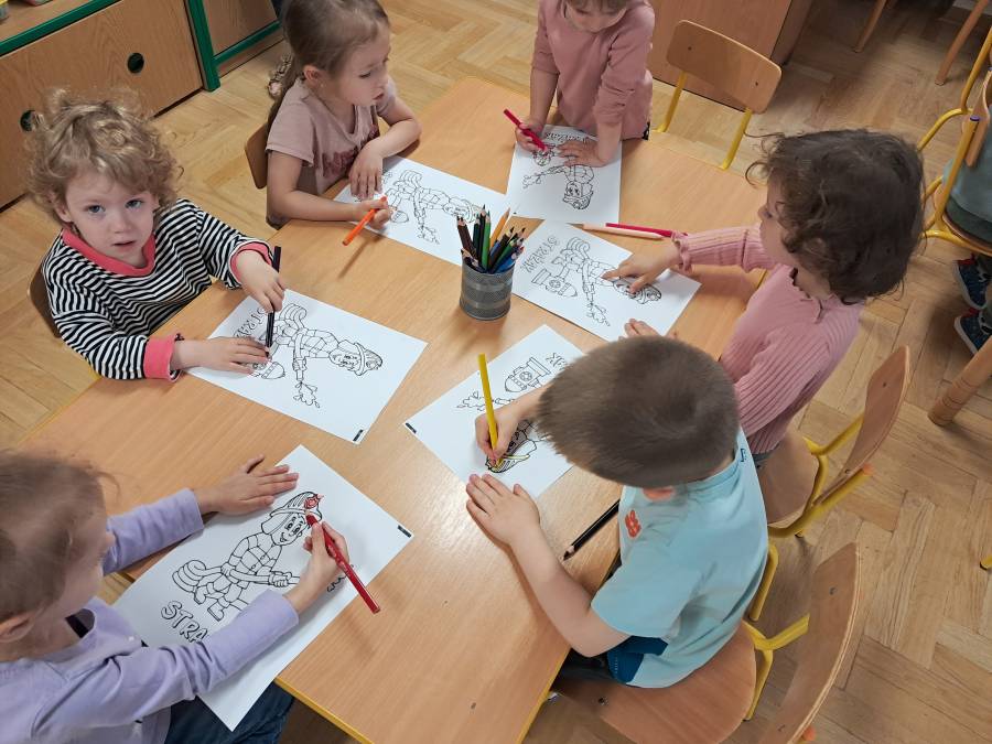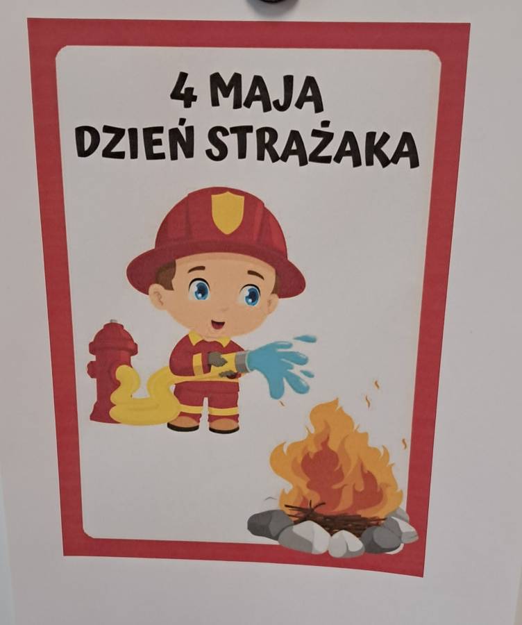 Grupa Żabek obchodziła Dzień Strażaka, święto tych, którzy pełnią niebezpieczną, pełną zagrożeń, ale też piękną służbę dawania siebie innym w walce o ich życie i zdrowie. Przedszkolaki dowiedziały się, czym zajmuje się strażak ( nie tylko gaszeniem pożarów), czego potrzebuje do swojej pracy, a także co trzeba zrobić żeby móc zostać strażakiem. Podsumowaniem zajęć była praca plastyczna pt. Strażak.