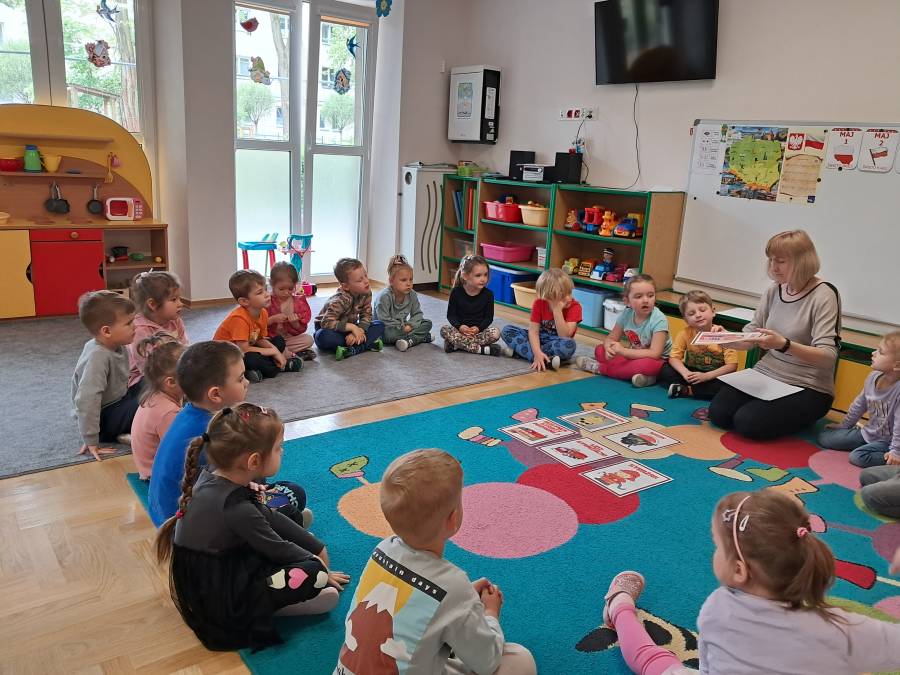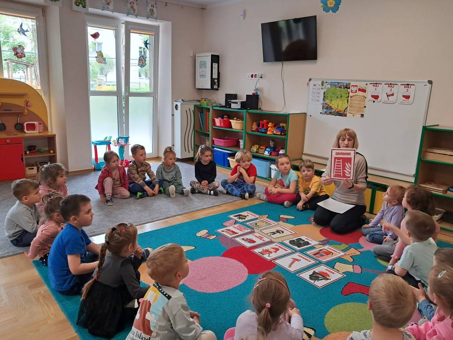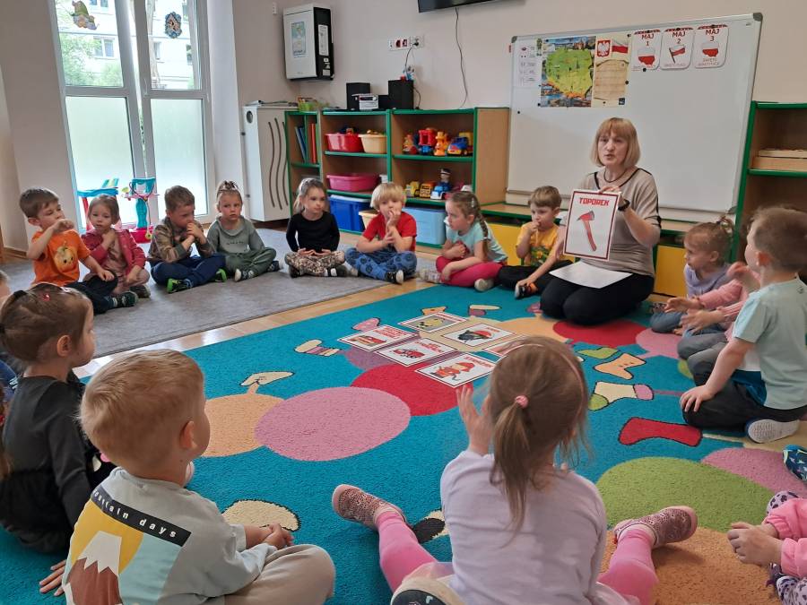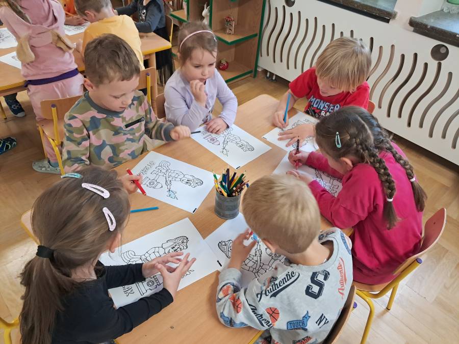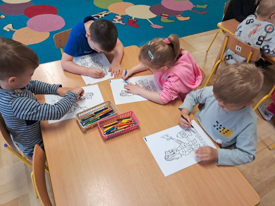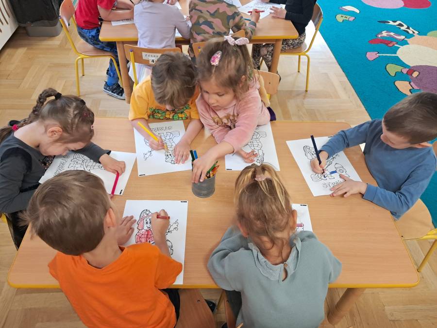 Grupa Żabek obchodziła Dzień Strażaka, święto tych, którzy pełnią niebezpieczną, pełną zagrożeń, ale też piękną służbę dawania siebie innym w walce o ich życie i zdrowie. Przedszkolaki dowiedziały się, czym zajmuje się strażak ( nie tylko gaszeniem pożarów), czego potrzebuje do swojej pracy, a także co trzeba zrobić żeby móc zostać strażakiem. Podsumowaniem zajęć była praca plastyczna pt. Strażak.