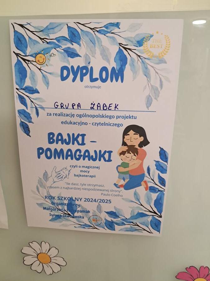 Miło nam poinformować, że grupa Żabki otrzymała dyplom za zrealizowanie projektu edukacyjno- czytelniczego pt. Bajki-pomagajki czyli o magicznej mocy bajkoterapii oraz kolejne podziękowanie i uznanie za ochronę polskich lasów przed pożarami biorąc udział w akcji Giga Laurka dla Strażników Lasów. Gratulujemy !!!