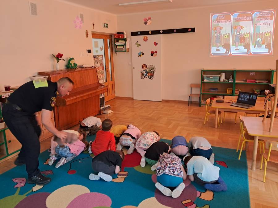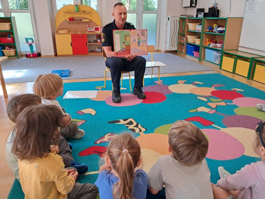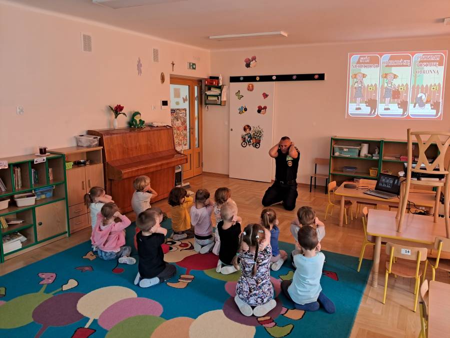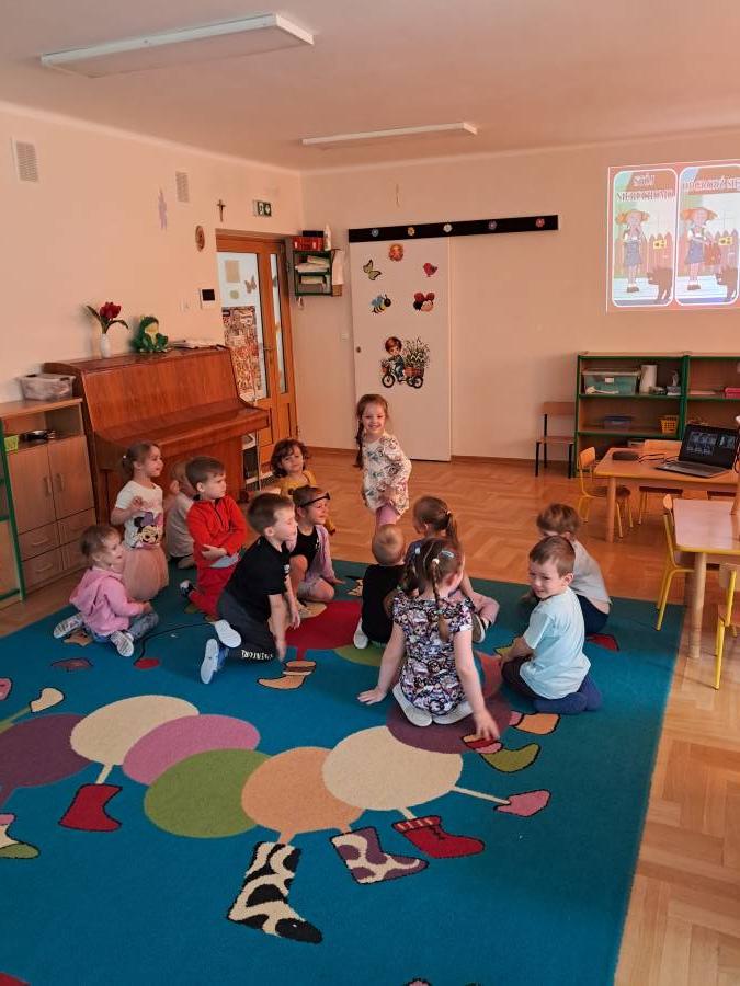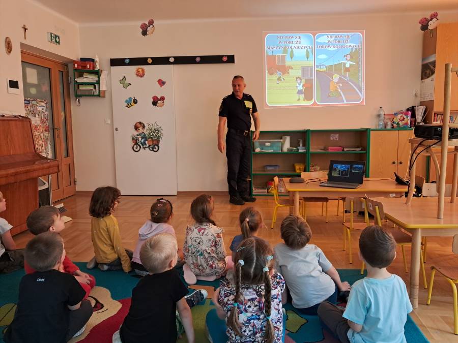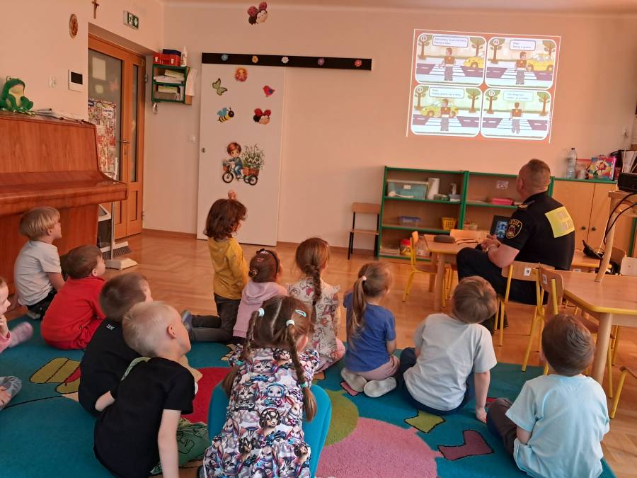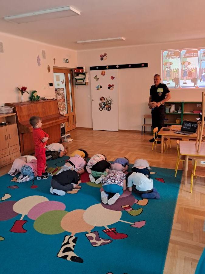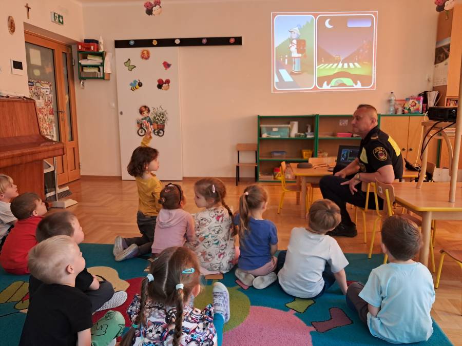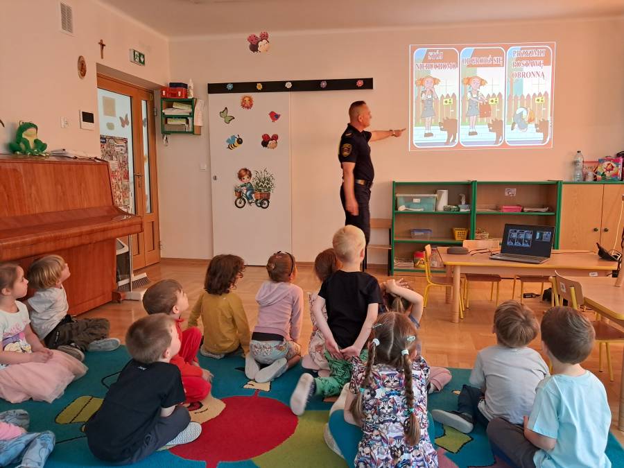 W dniu 30 maja mieliśmy przyjemność gościć w naszej grupie funkcjonariusza Straży Miejskiej. Przedszkolaki wzbogaciły swoją wiedzę na temat szeroko pojętego bezpieczeństwa podczas wiosny i wakacji. Dzieci miały także okazję znaleźć odpowiedź na pytanie: czy mogą bawić się z psem, którego nie znają?, jak się zachować gdy nas chce zaatakować pies? itp. Na zakończenie wizyty, dzieci wręczyły podziękowanie strażnikowi za pouczającą lekcję i wspólnie pozowały do pamiątkowego zdjęcia. Spotkanie było nie tylko okazją do nauki, ale także do budowania pozytywnego wizerunku służb mundurowych wśród najmłodszych.