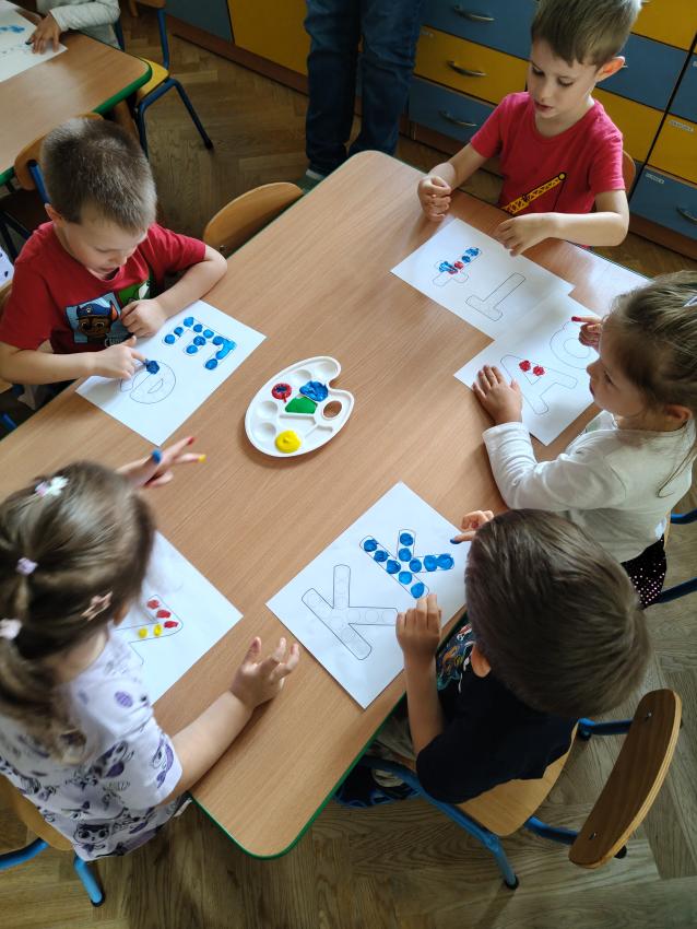 Dnia 15 września przypada Międzynarodowy Dzień Kropki. W tym dniu dzieci poznały historię Vashti, od której wszystko się zaczęło. Następnie dzieci kodowały kropkowe emocje po to by płynnie przejść do kropkowych wygibasów. Na koniec dzieci z grupy Żabek wykropkowały  literki, ćwicząc swoje paluszki.