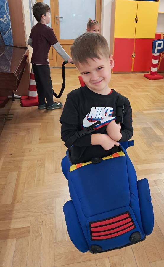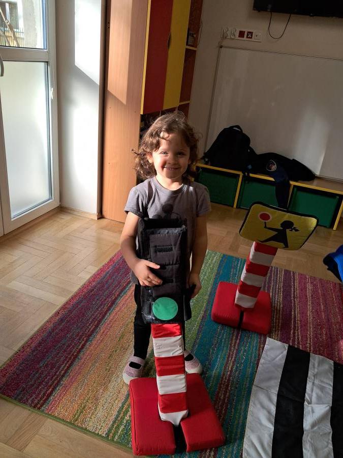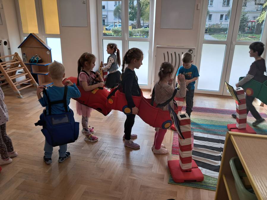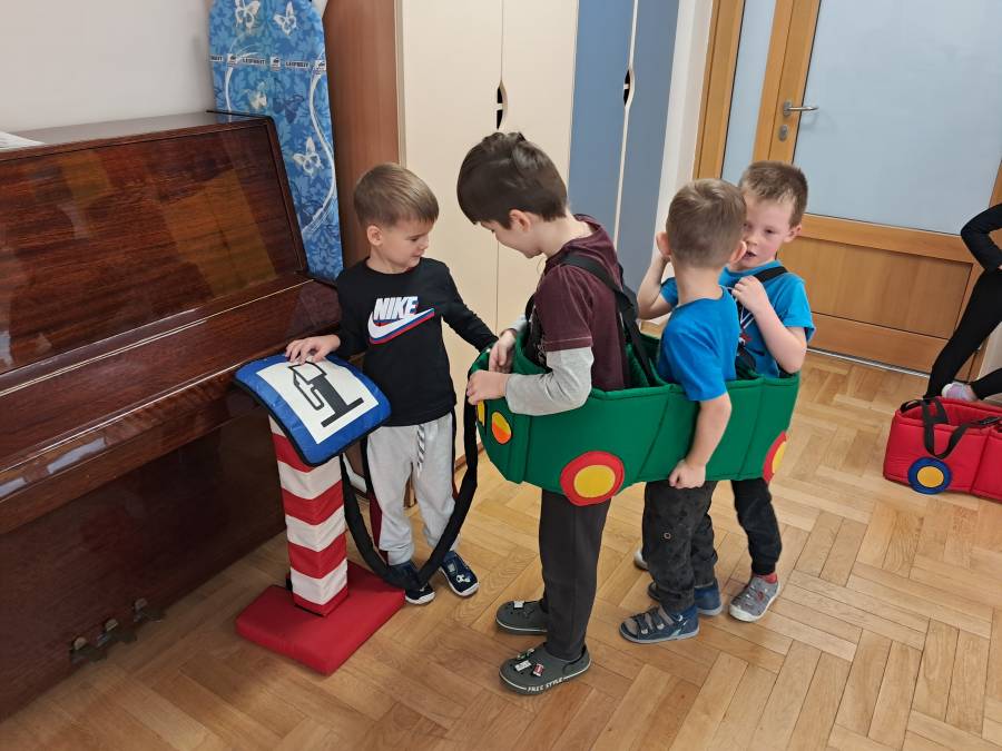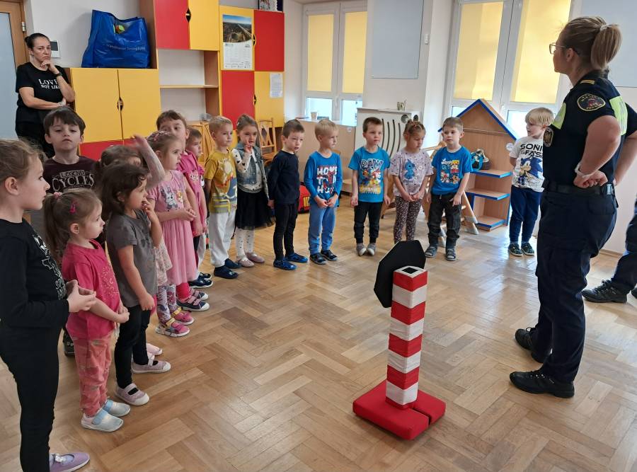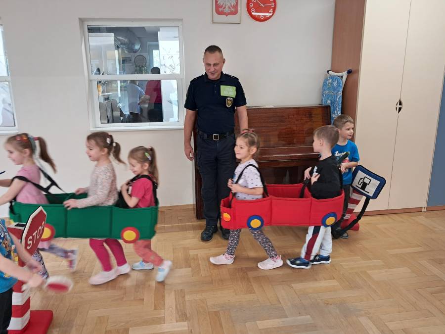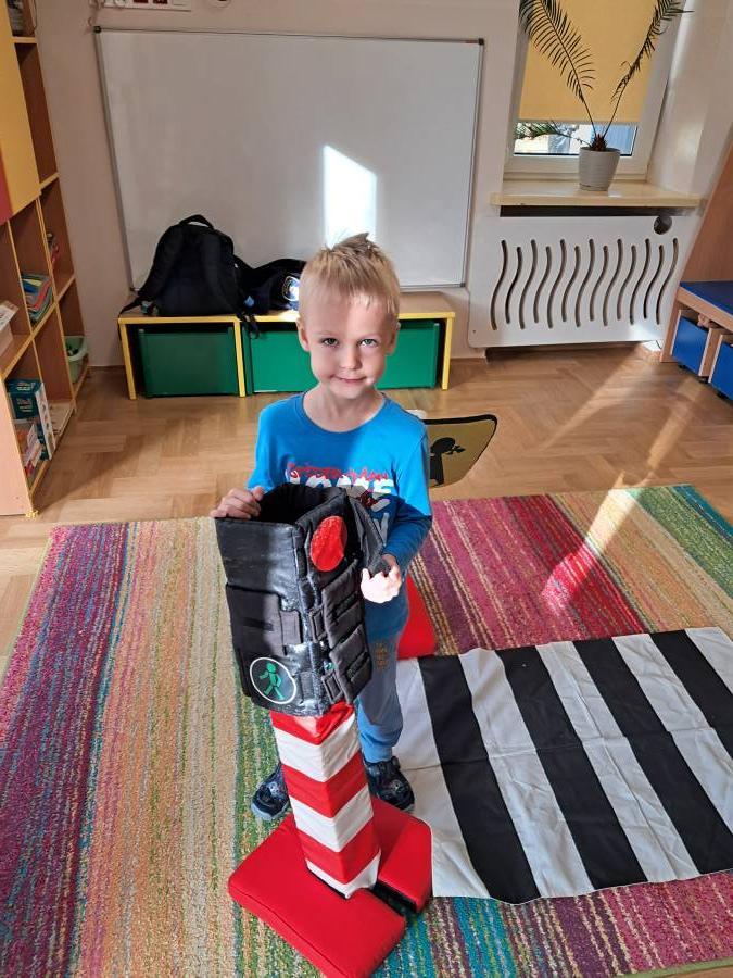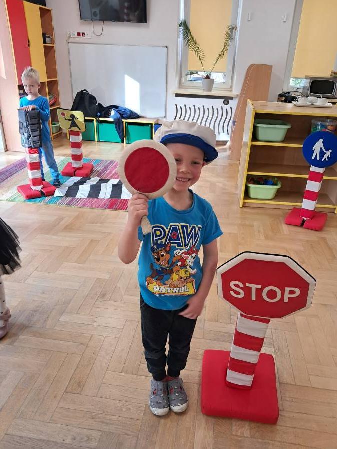 Dnia 30 października 2025r. w naszym przedszkolu mieliśmy okazję gościć na zajęciach funkcjonariuszy Straży Miejskiej. Celem przeprowadzonych zajęć było poszerzenie wiedzy wśród przedszkolaków na temat obowiązujących zasad bezpieczeństwa na ulicy. Poprzez wspaniałą zabawę w "miasteczku ruchu drogowego" Żabki utrwaliły zasady bezpiecznego poruszania się po drodze przy pomocy "autochodzików". W podziękowaniu za atrakcyjne zajęcia i miłą atmosferę przedszkolaki wręczyły podziękowanie funkcjonariuszom.