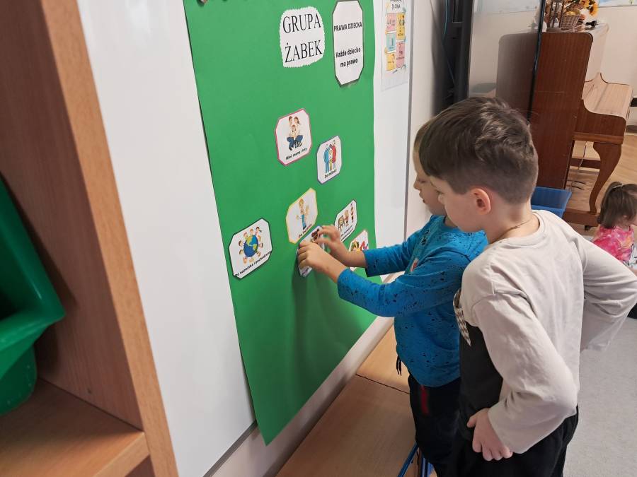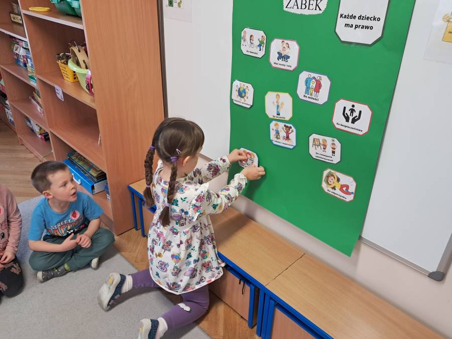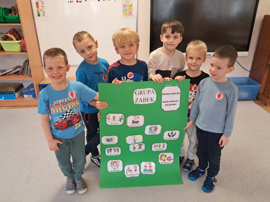 20 listopada to wyjątkowy dzień - Międzynarodowy Dzień Praw Dziecka. Jest to moment, w którym uwaga wszystkich kierowana jest na dzieci i ich prawa. Ważnym elementem wychowania przedszkolnego jest kształtowanie u dzieci świadomości ich własnych praw, uczenie poszanowania praw innych i radzenie sobie w sytuacjach naruszania własnych praw. W grupie Żabek zostały przeprowadzone zajęcia o prawach dziecka z wykorzystaniem ciekawych materiałów edukacyjnych oraz odbyły się rozmowy na ten temat. Podsumowaniem zajęć było wykonanie przez Żabki plakatu z prawami dziecka.