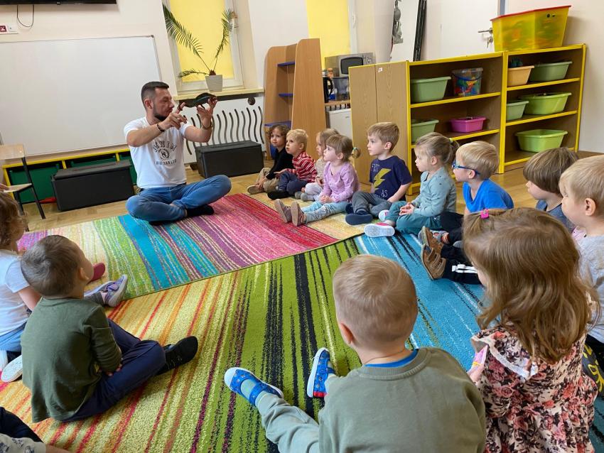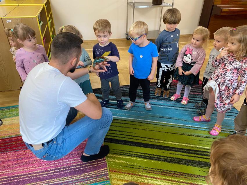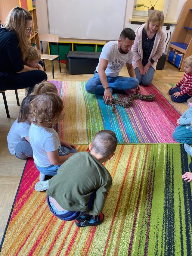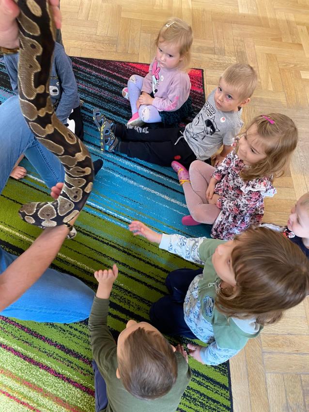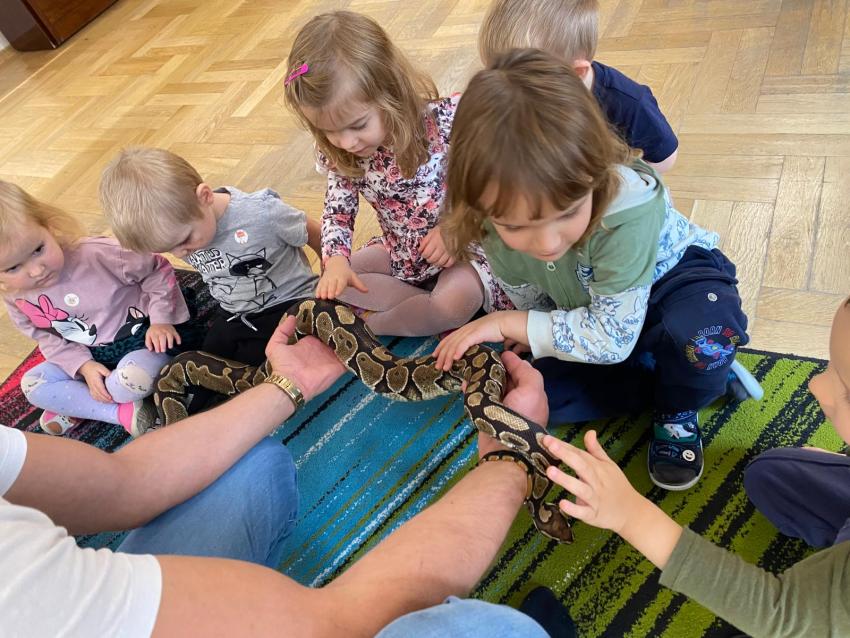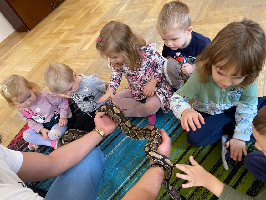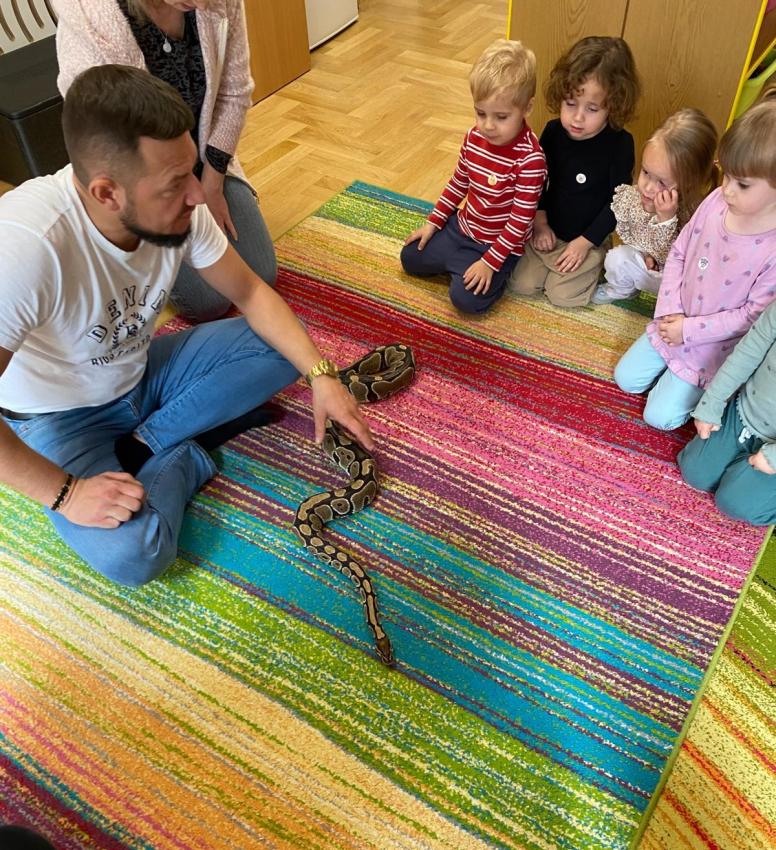 Misie z zaciekawieniem oglądały egzotyczne zwierzęta na żywej lekcji przyrody.