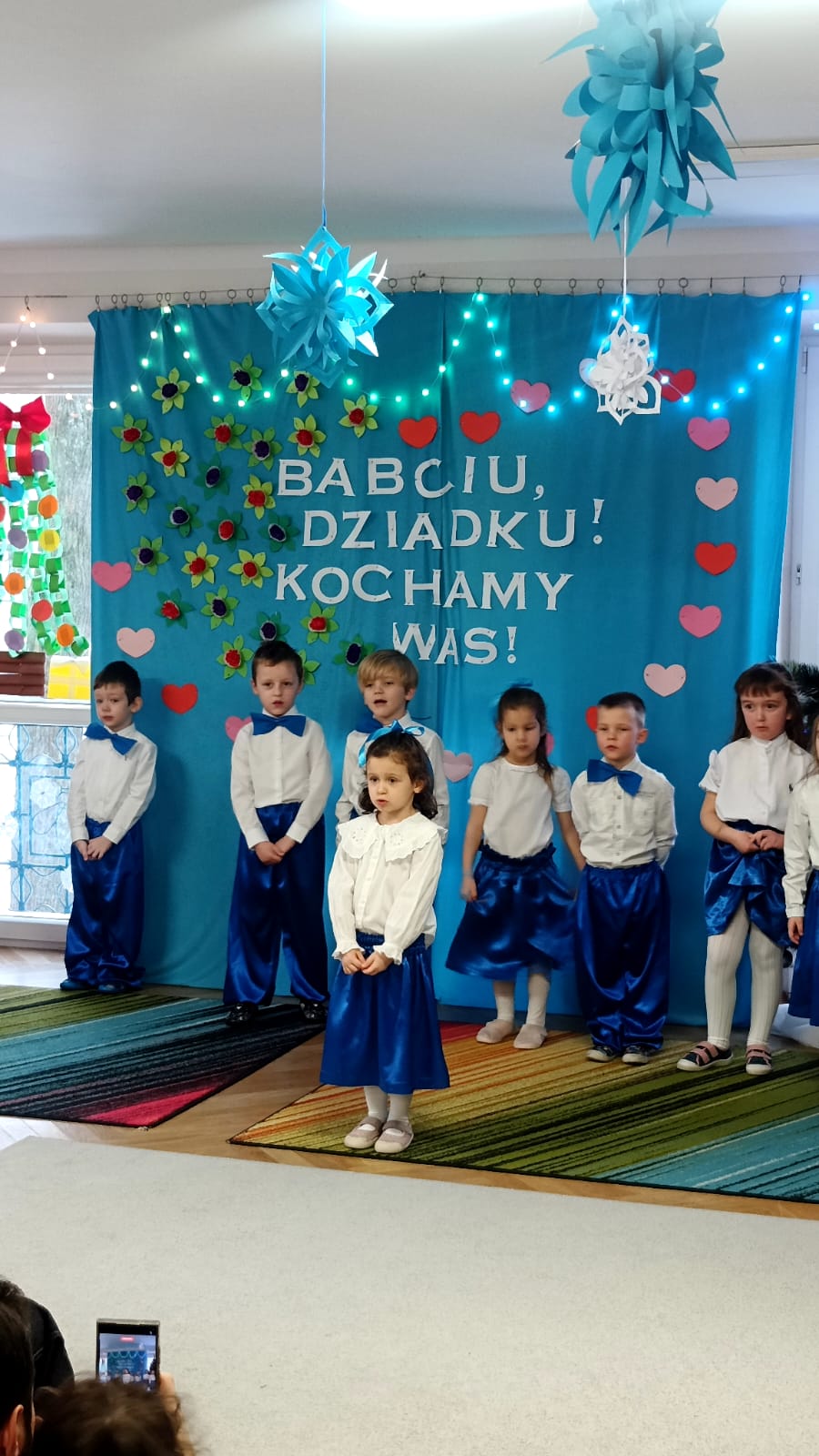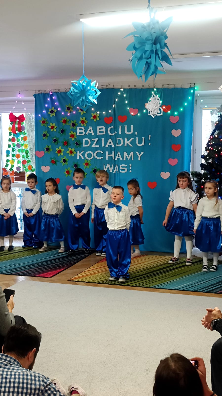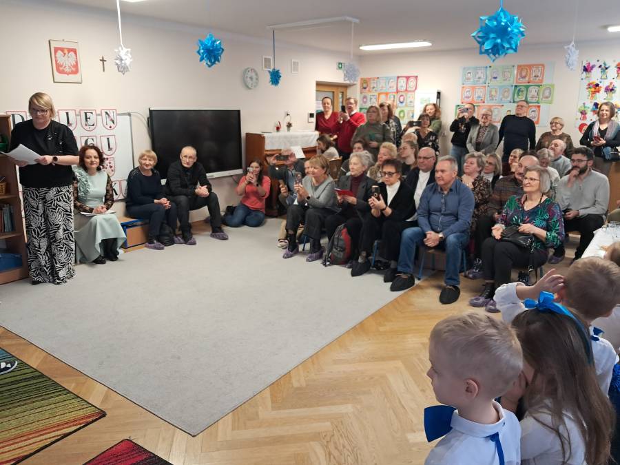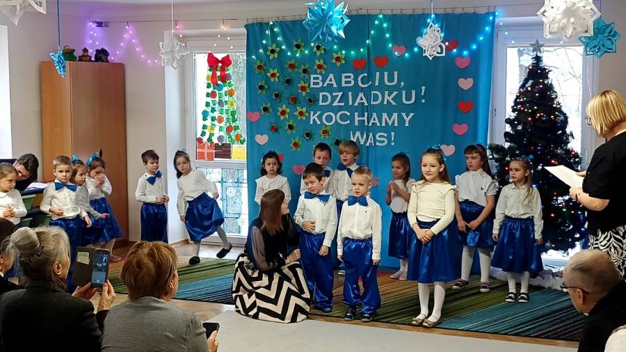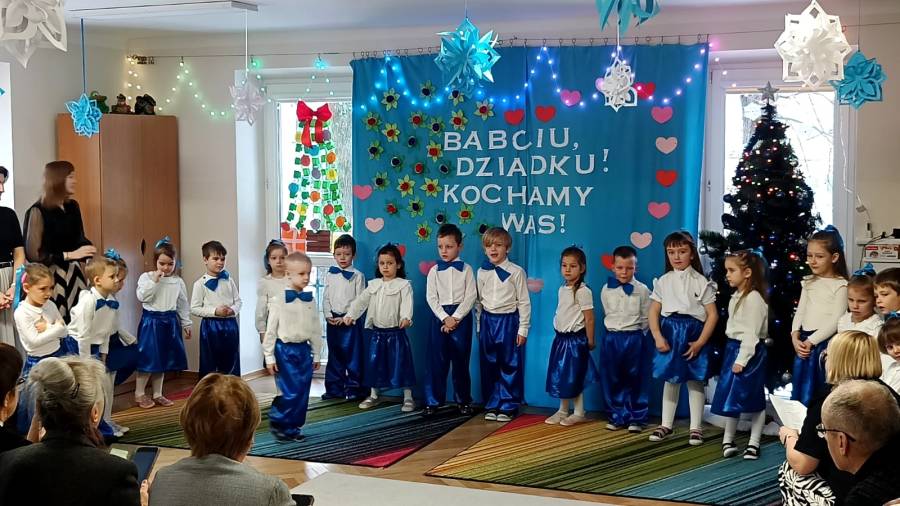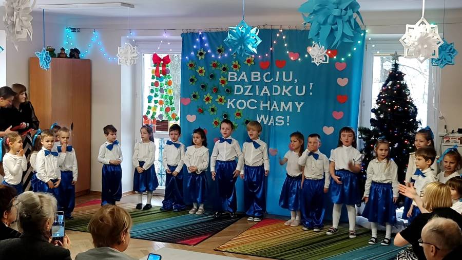 Przedszkolaki z wielkim zaangażowaniem i uśmiechem na twarzy starali się jak najlepiej zaprezentować, aby sprawić radość zaproszonym gościom. Występ został nagrodzony gromkimi brawami, a na twarzach babć i dziadków nie zabrakło wzruszenia i dumy.