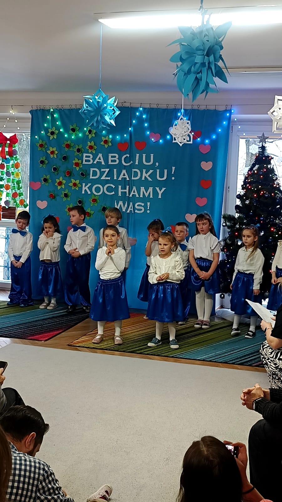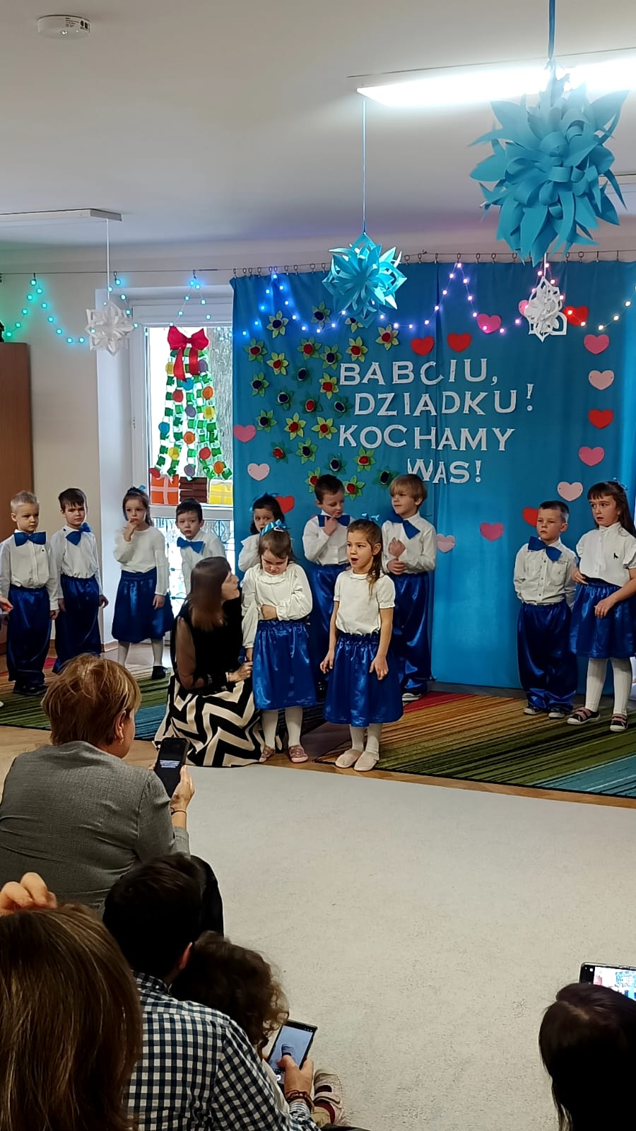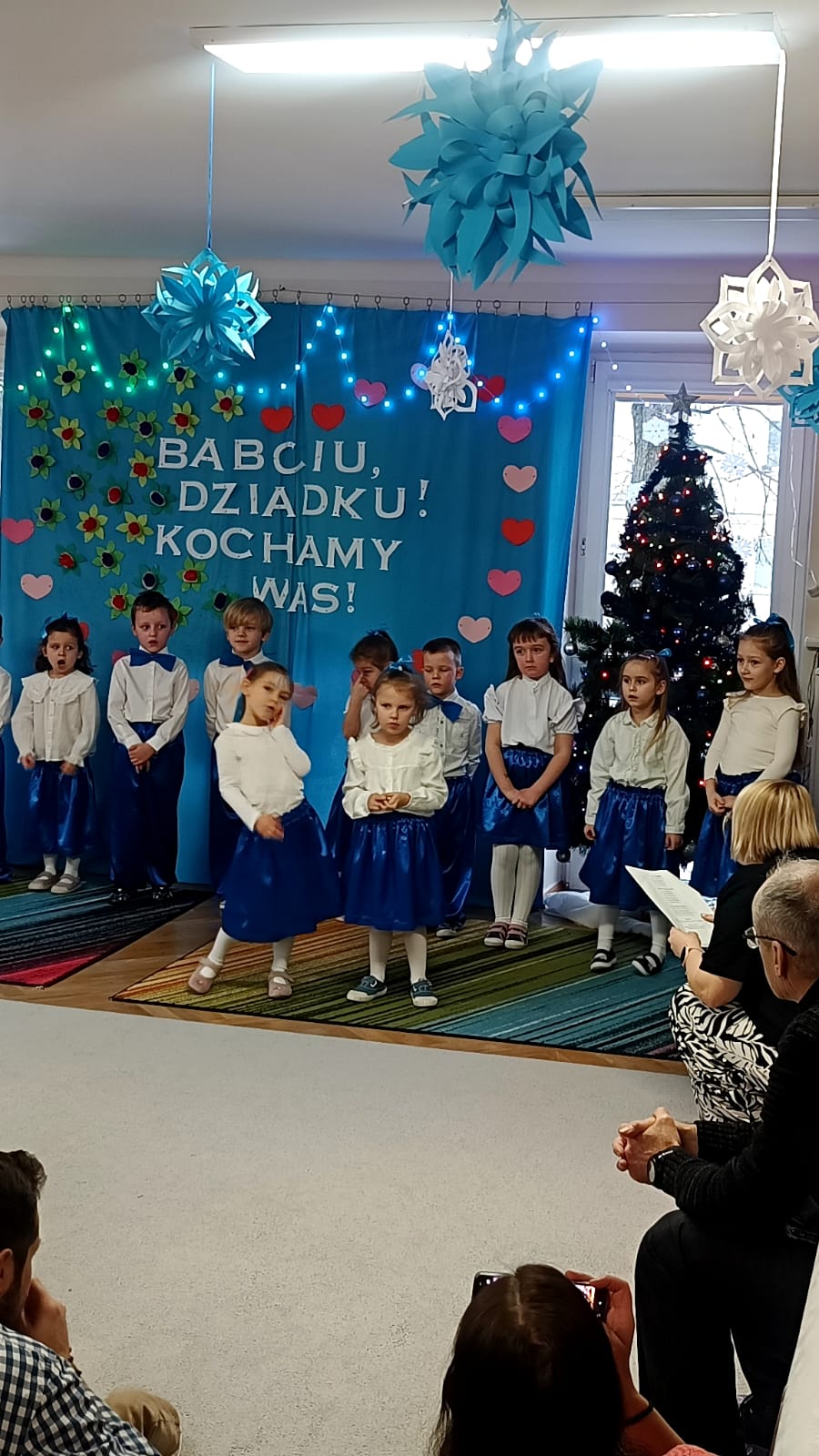 Przedszkolaki z wielkim zaangażowaniem i uśmiechem na twarzy starali się jak najlepiej zaprezentować, aby sprawić radość zaproszonym gościom. Występ został nagrodzony gromkimi brawami, a na twarzach babć i dziadków nie zabrakło wzruszenia i dumy.