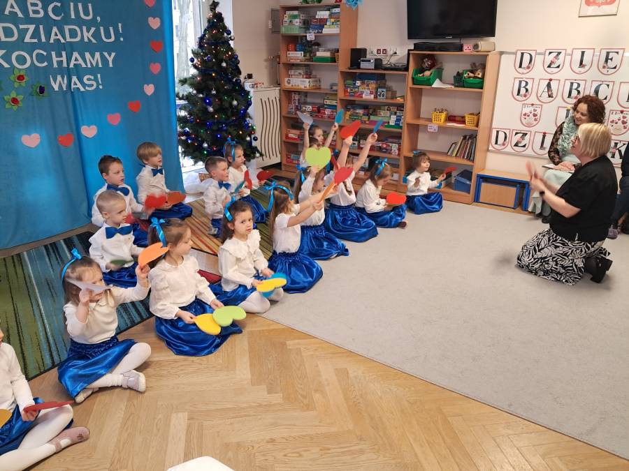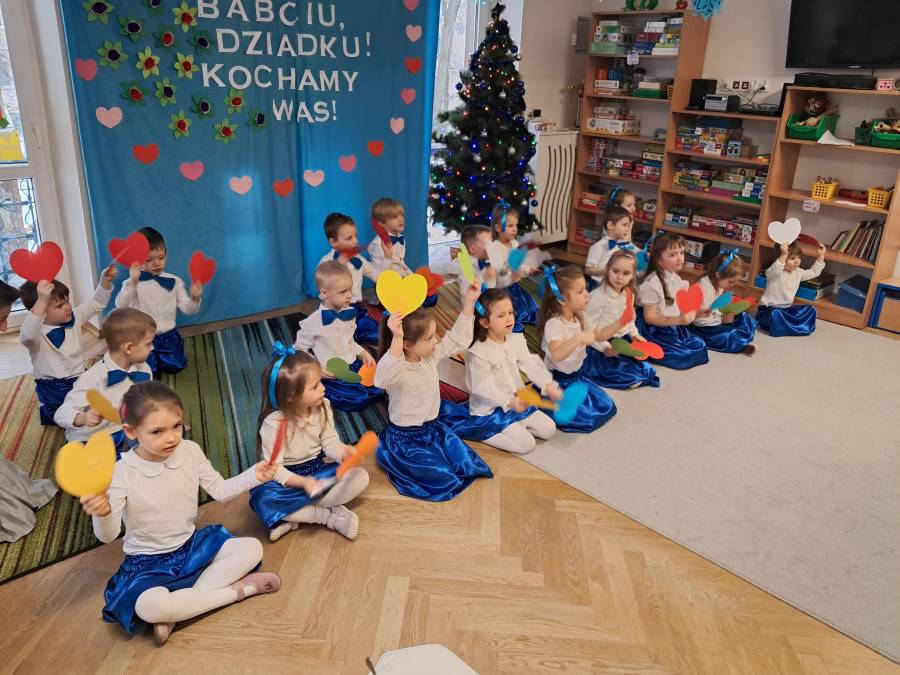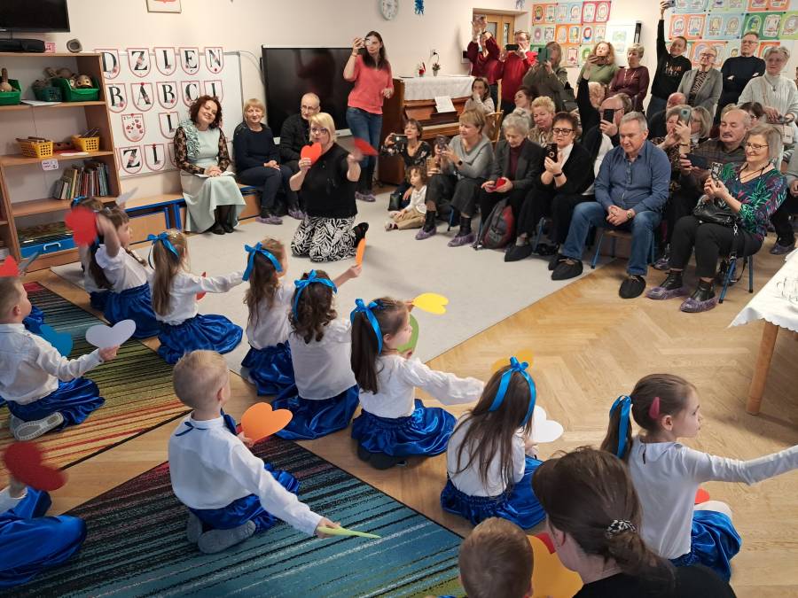 Z okazji Dnia Babci i Dziadka Żabki przygotowały wyjątkowy, pełen radości i wzruszeń występ artystyczny. Mali artyści grali na instrumentach , zaprezentowali wierszyki, piosenki, a także zatańczyli z serduszkami. Występ były wyrazem ich miłości, wdzięczności i szacunku dla ukochanych dziadków.