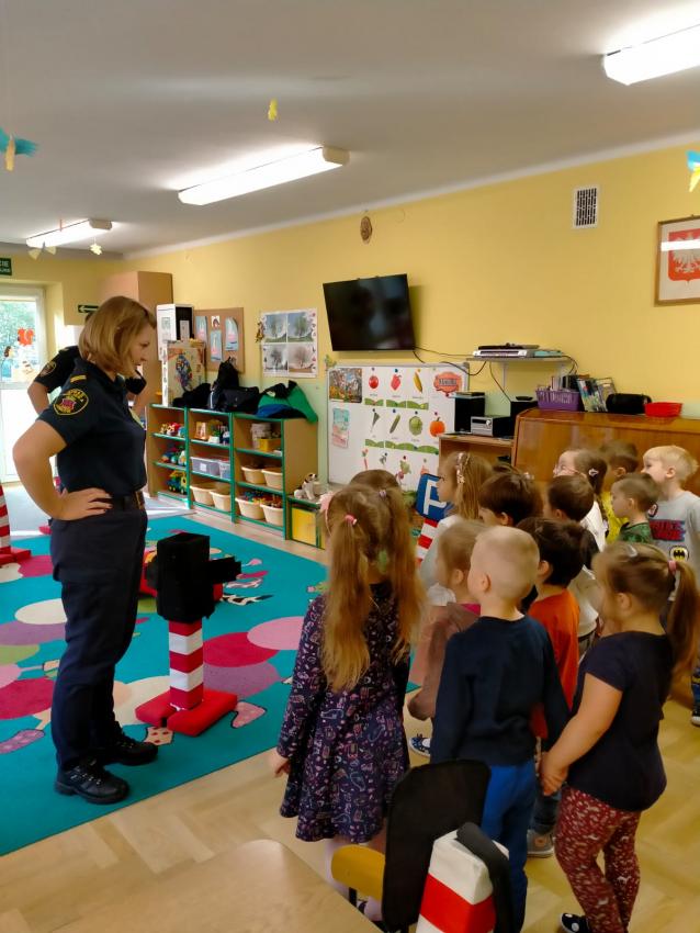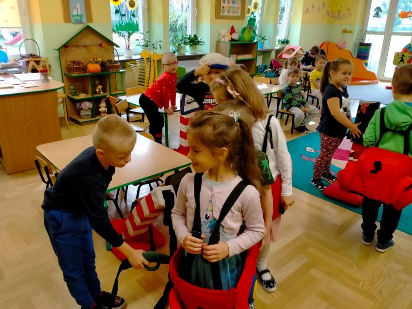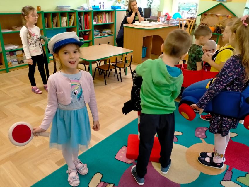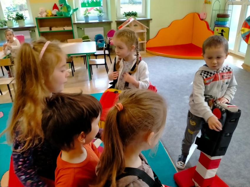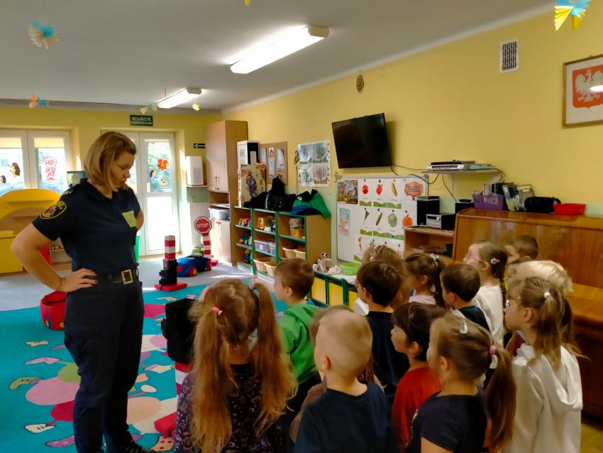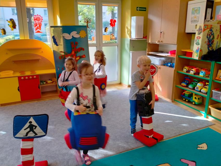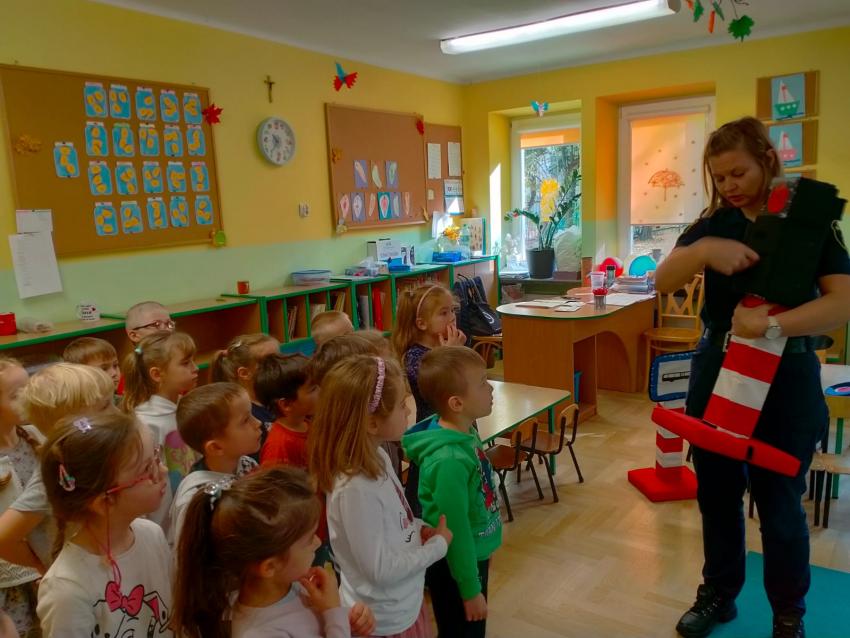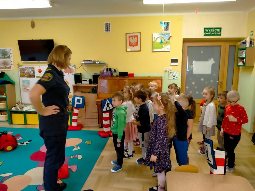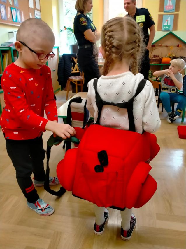 Zajączki na warsztatach Auto chodzik ze Strażą Miejską