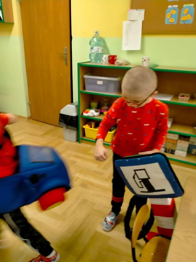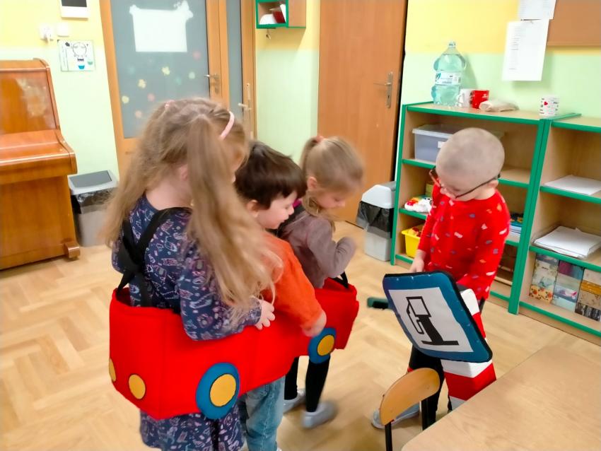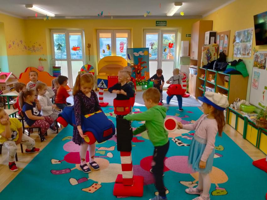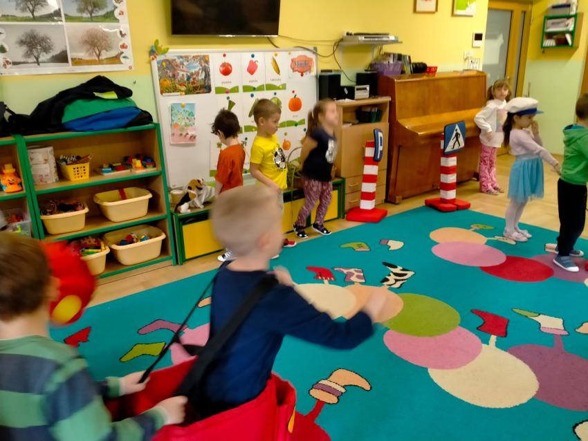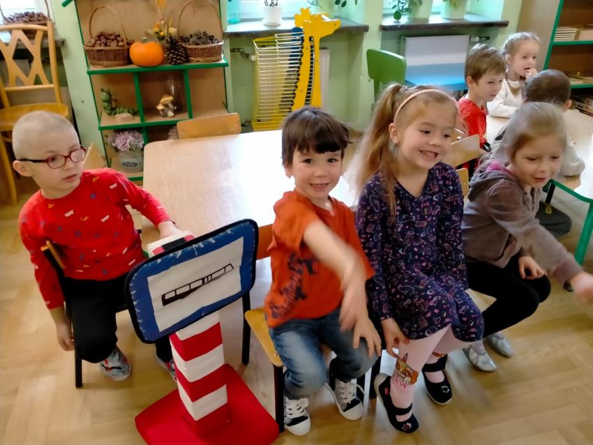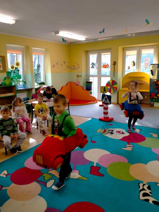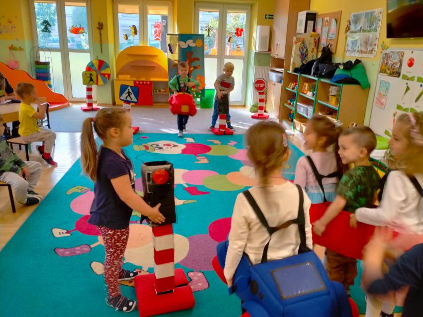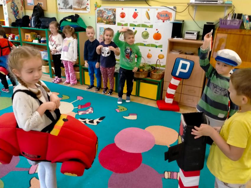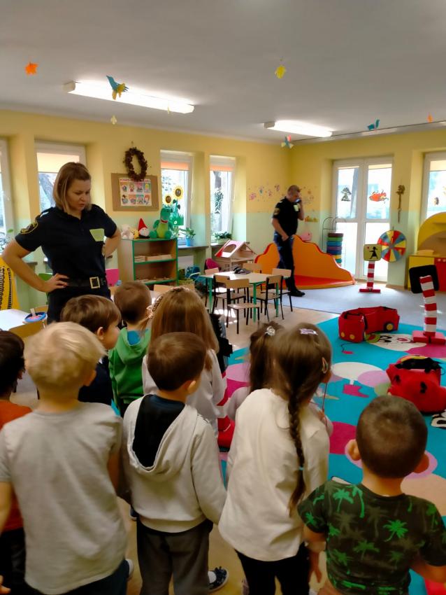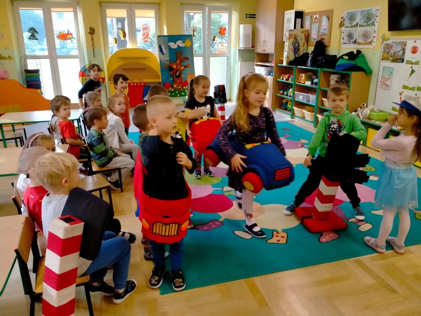 Zajączki na warsztatach Auto chodzik ze Strażą Miejską
