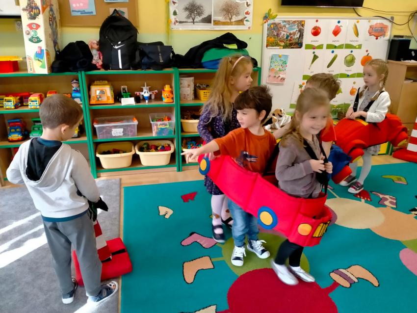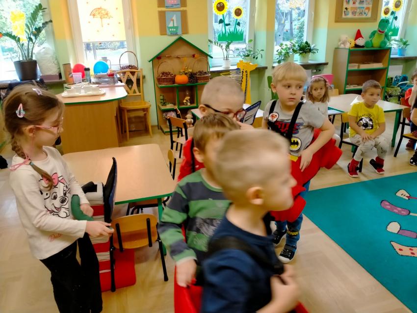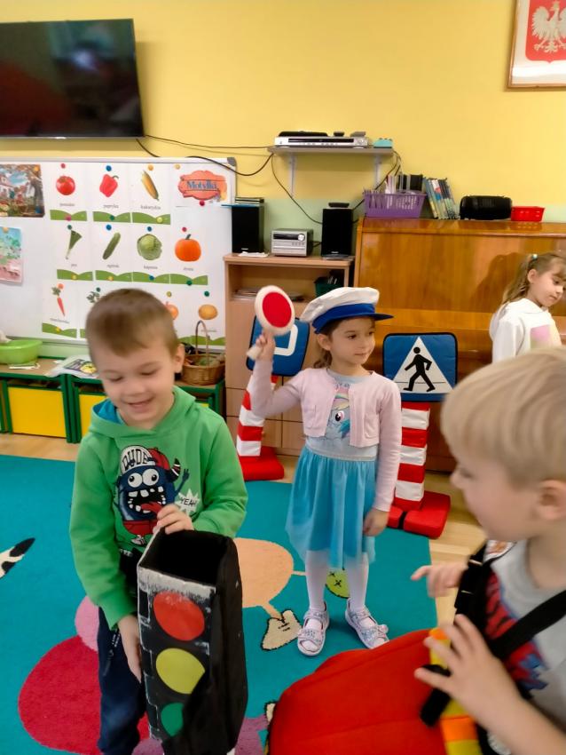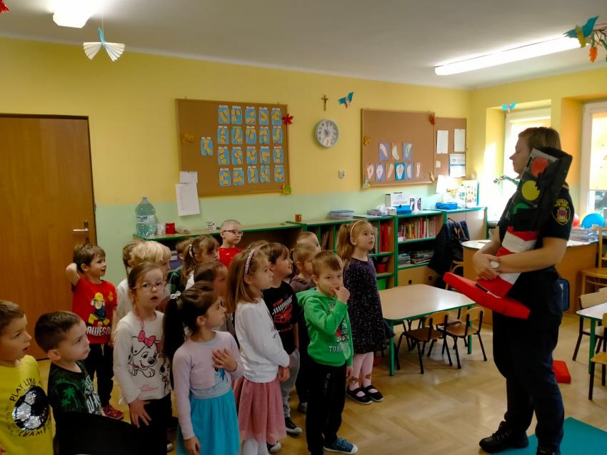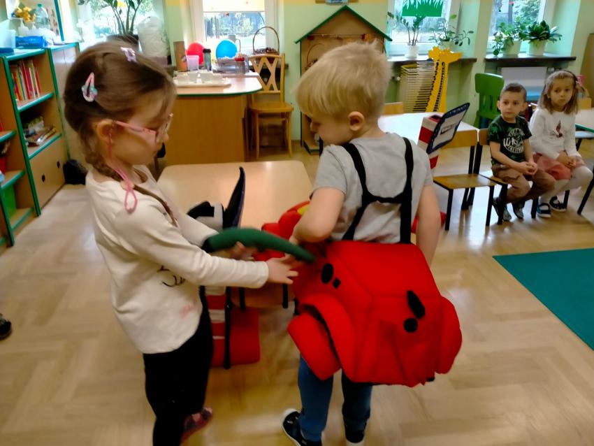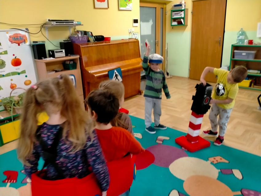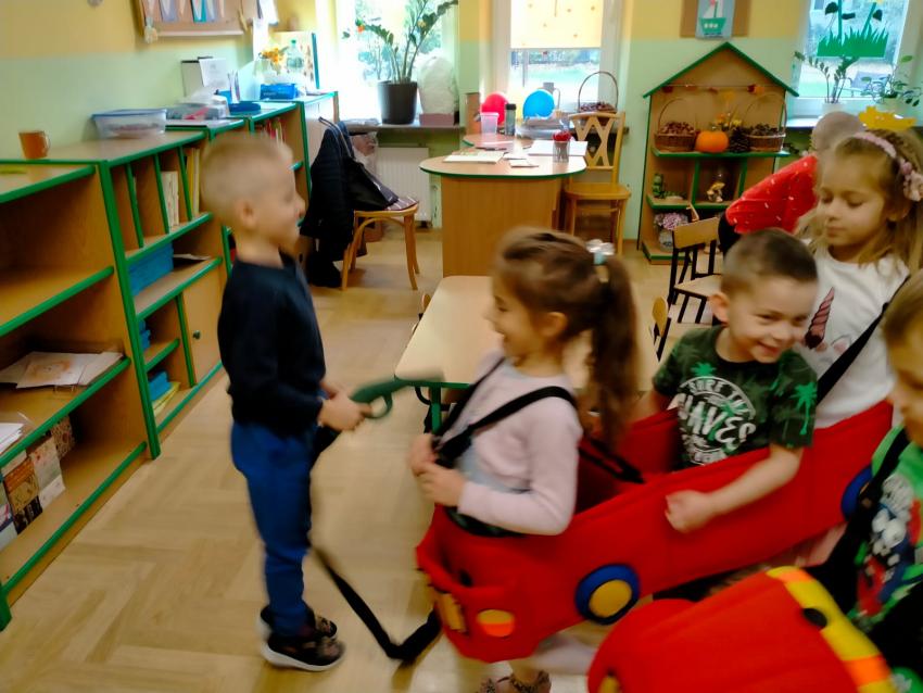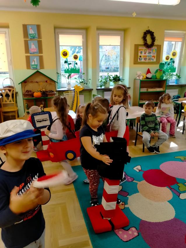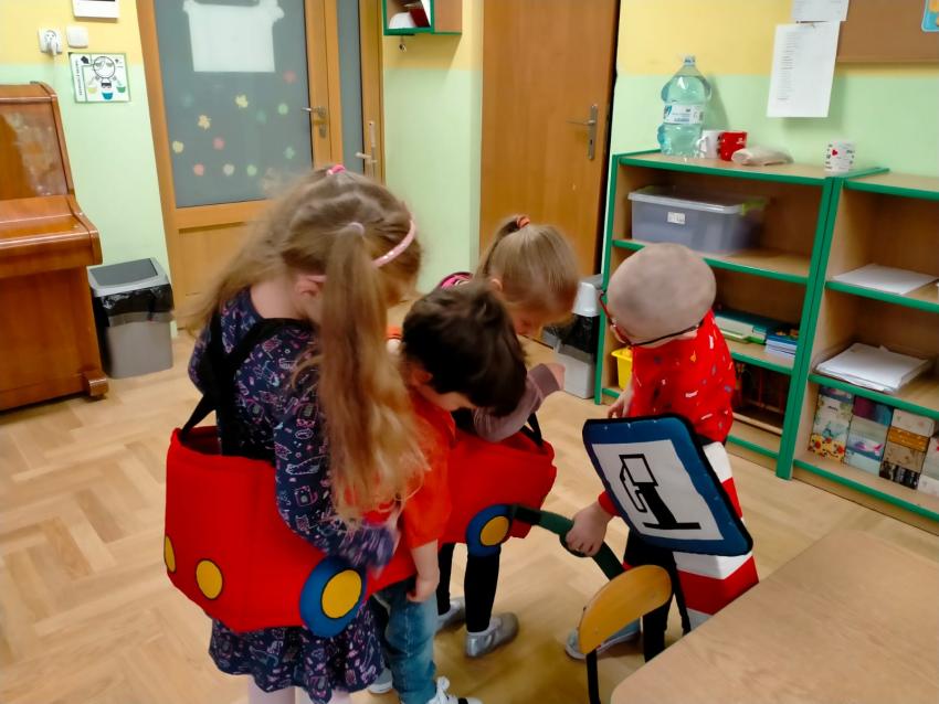 Zajączki na warsztatach Auto chodzik ze Strażą Miejską