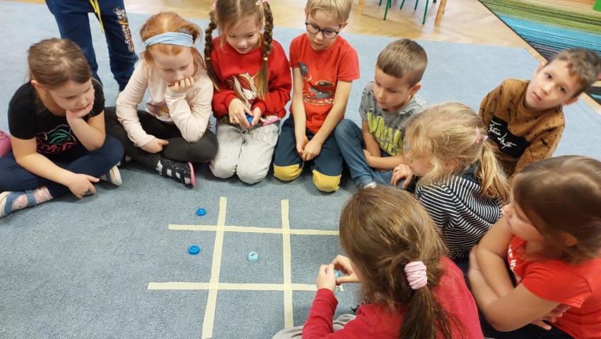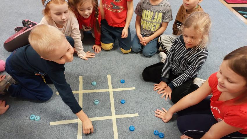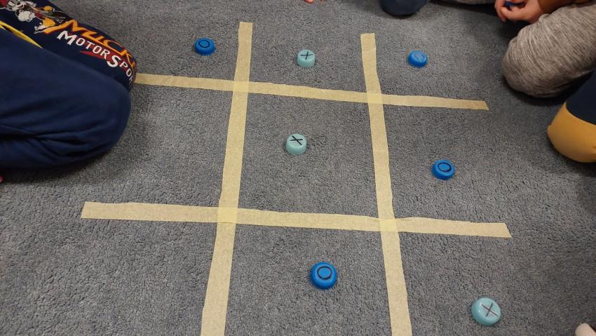 Biedroneczki grają w kółko i krzyżyk na dywanie