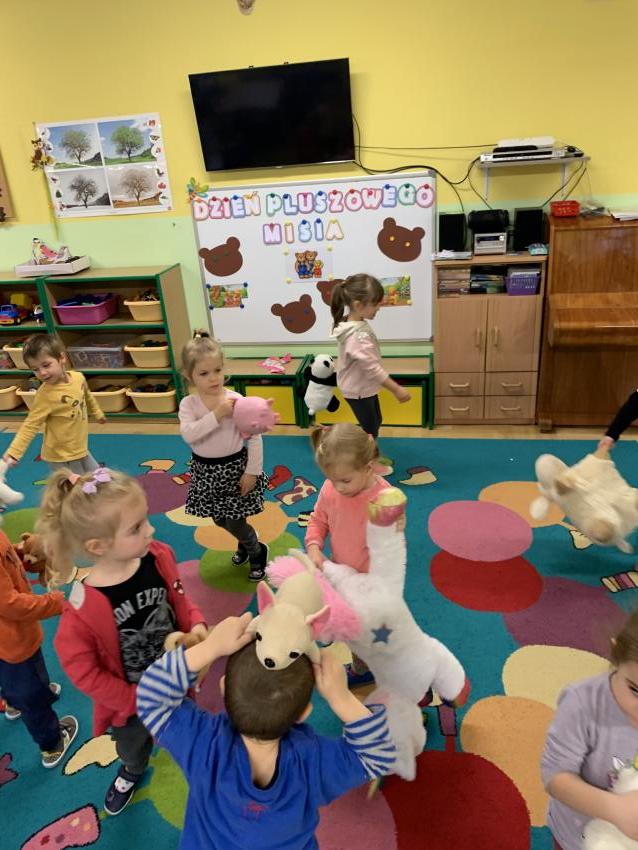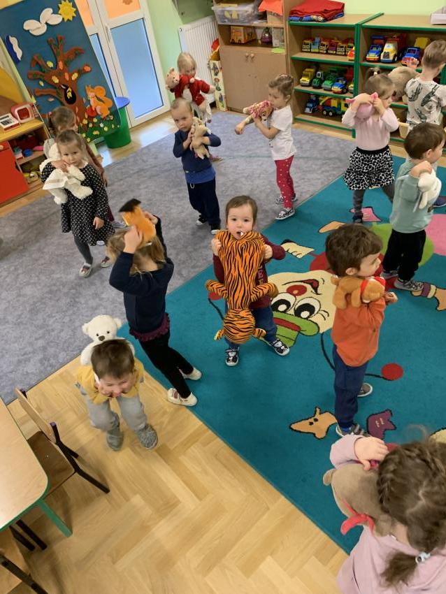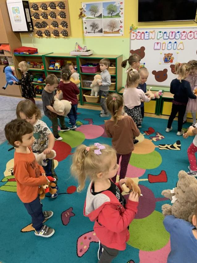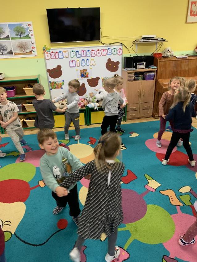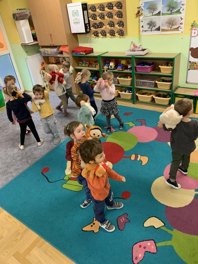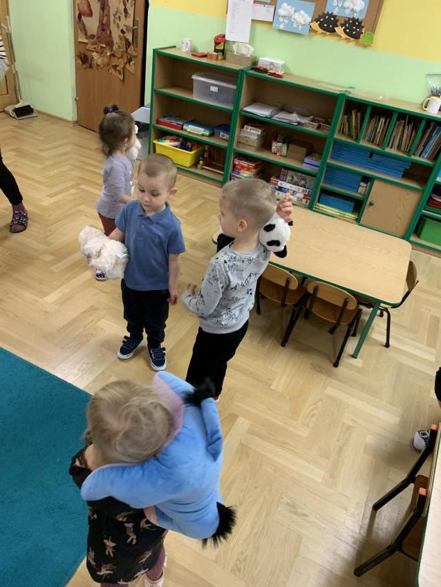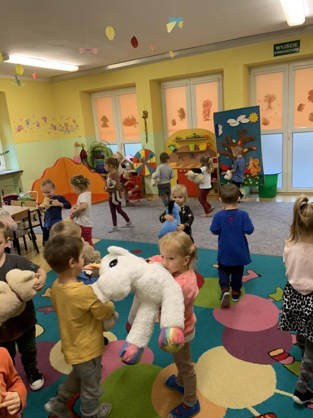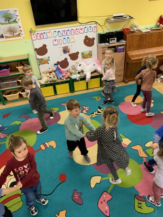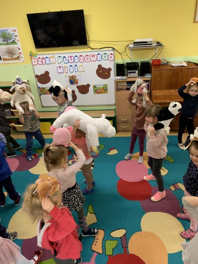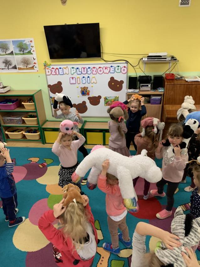 Zabawy, konkursy i wspólna zabawa grupy I i II z okazji Dnia Pluszowego Misia