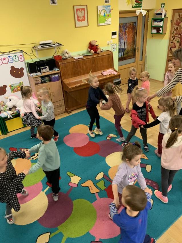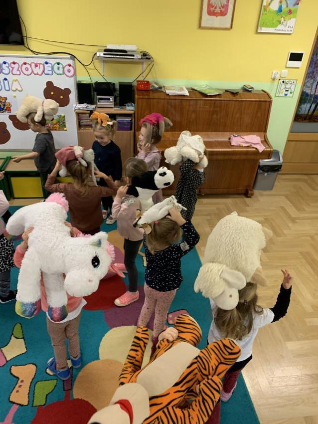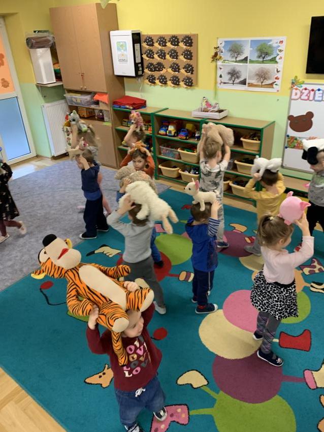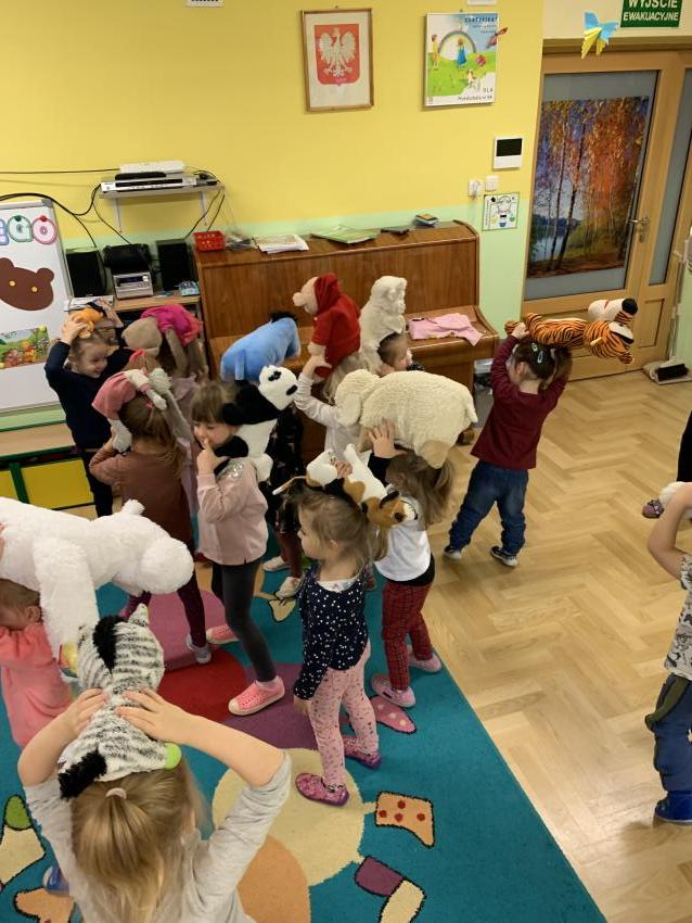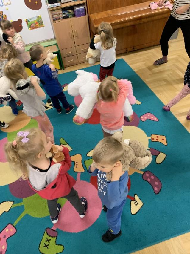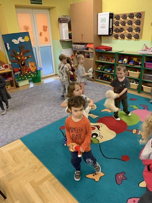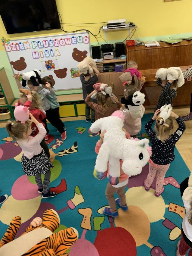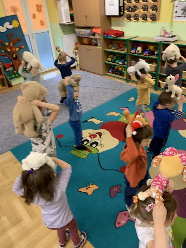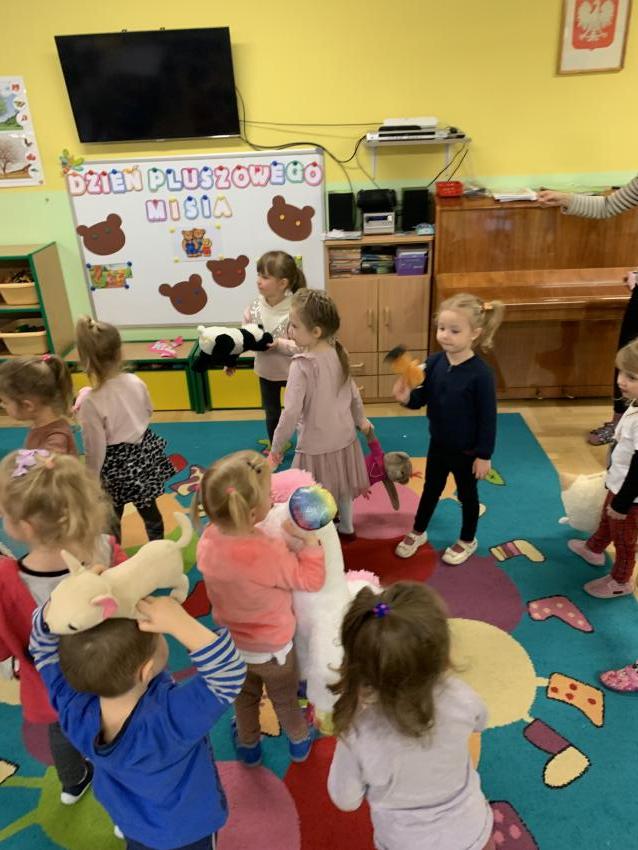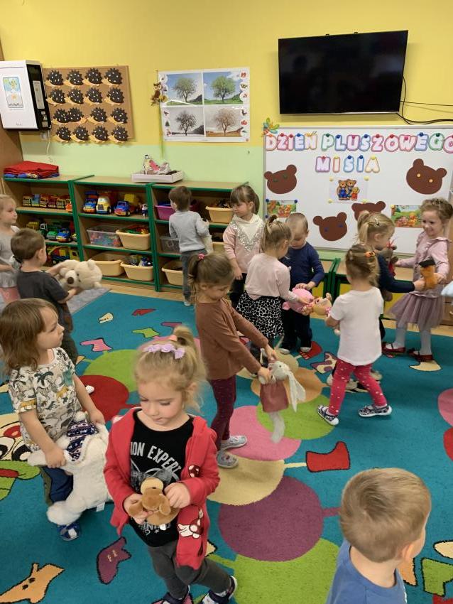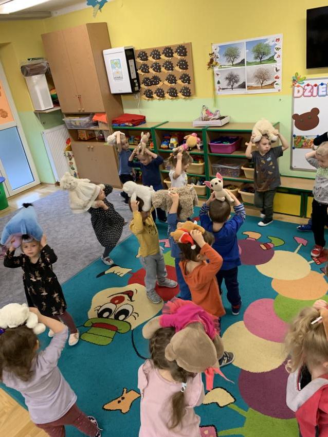 Zabawy, konkursy i wspólna zabawa grupy I i II z okazji Dnia Pluszowego Misia