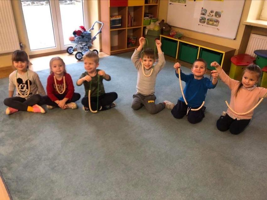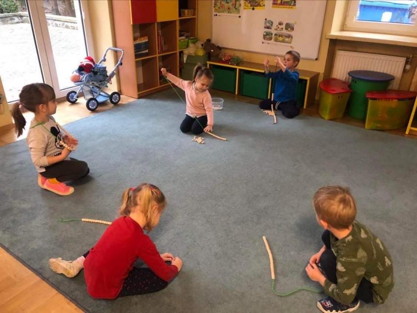 Zabawa ta wspaniale kształtuje motorykę precyzyjną dziecka, koncentrację oraz myślenie. Nawlekanie makaronu/ korali jest bardzo ważną aktywnością kształtującą koordynację, precyzję oraz spostrzegania wzrokowego.