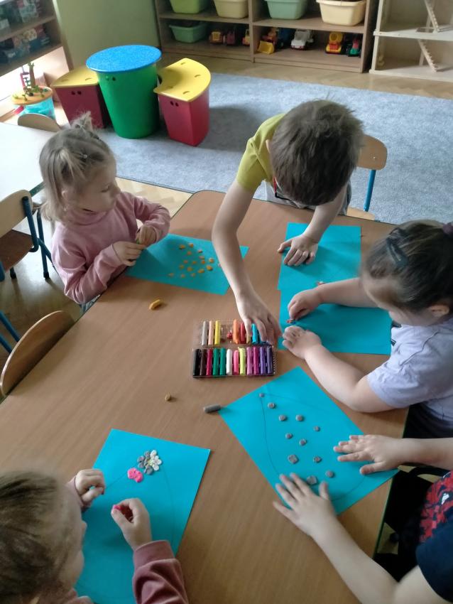 Kropelki wody - zabawa plastyczna z plasteliną gr III