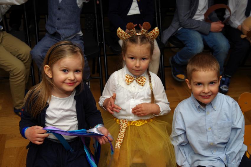 Przedszkolaki z grupy Wiewiórek: Klara, Tomek i Marysia