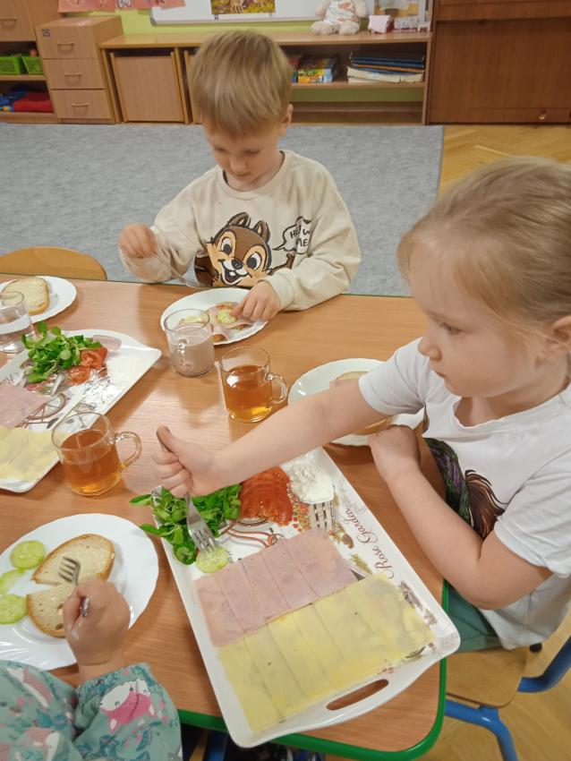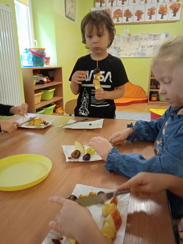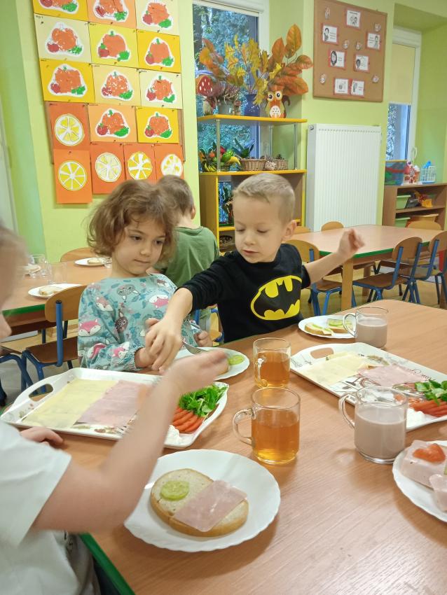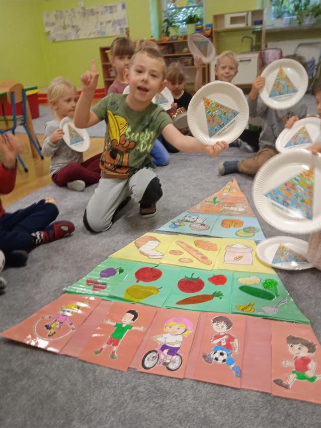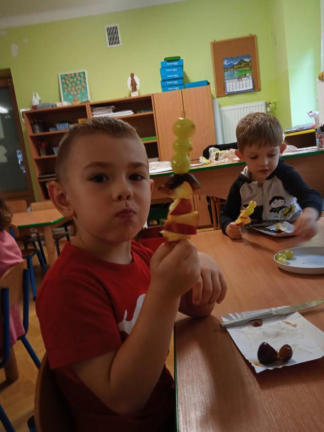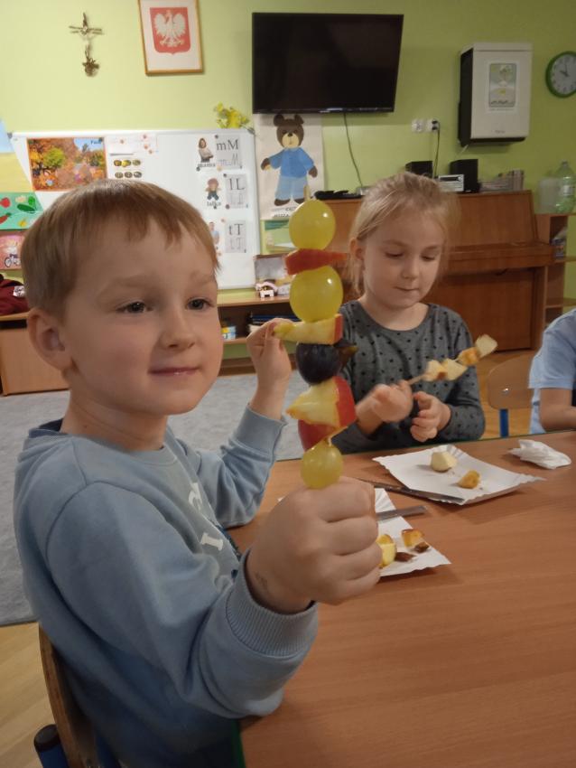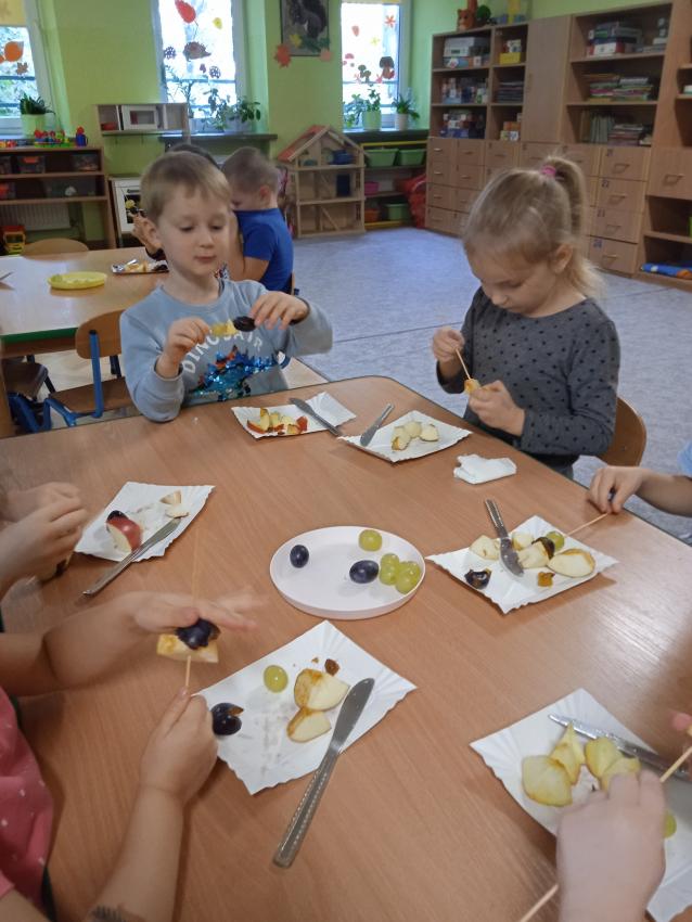 W ramach projektu "Zdrowe dzieci" odbył się cykl zajęć, w czasie których dzieci z grupy Wiewiórek brały udział w zabawach i warsztatach promujących zdrowy styl życia. Razem z Detektywem Witaminką Wiewiórki odkrywały codziennie nowe sekrety dobrego zdrowia, poznawały kolejne piętra piramidy zdrowego żywienia i aktywności fizycznej. W czasie zajęć dzieci uczestniczyły w warsztatach kulinarnych, przygotowywały owocowe szaszłyki, próbowały różnych produktów zbożowych, mlecznych. Wiewiórki brały udział w zabawach sensorycznych, ruchowych, rozwiązywały zagadki.