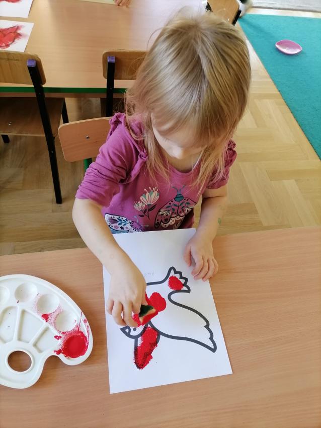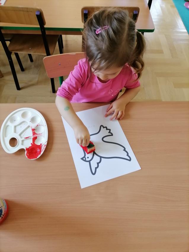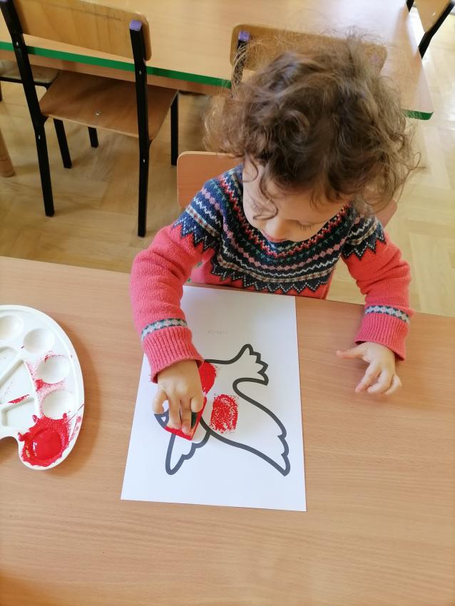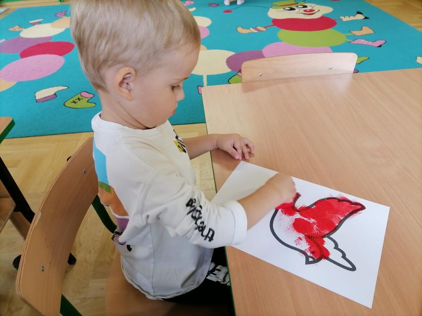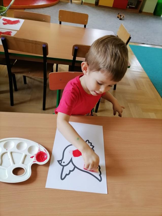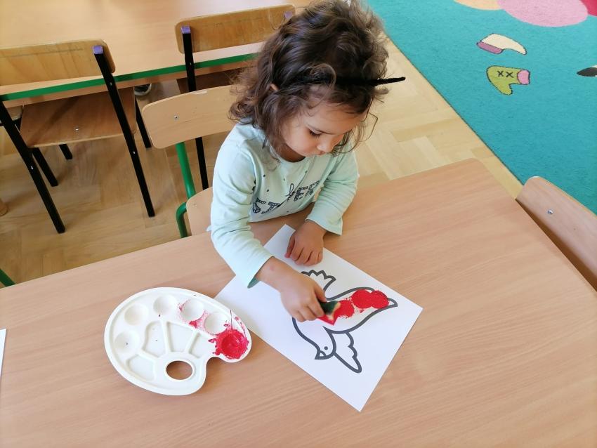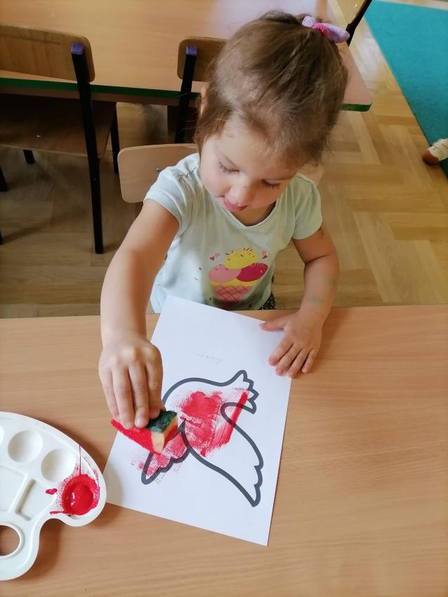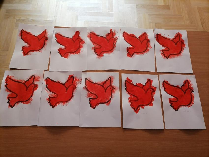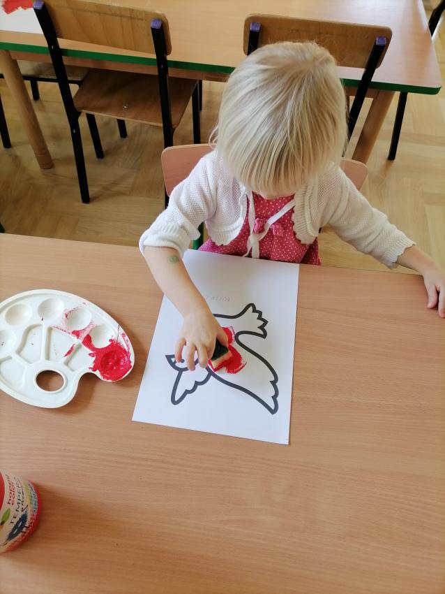 Zajęcia plastyczne w grupie I pt. Gołąbek, które stały się dekoracją sali
