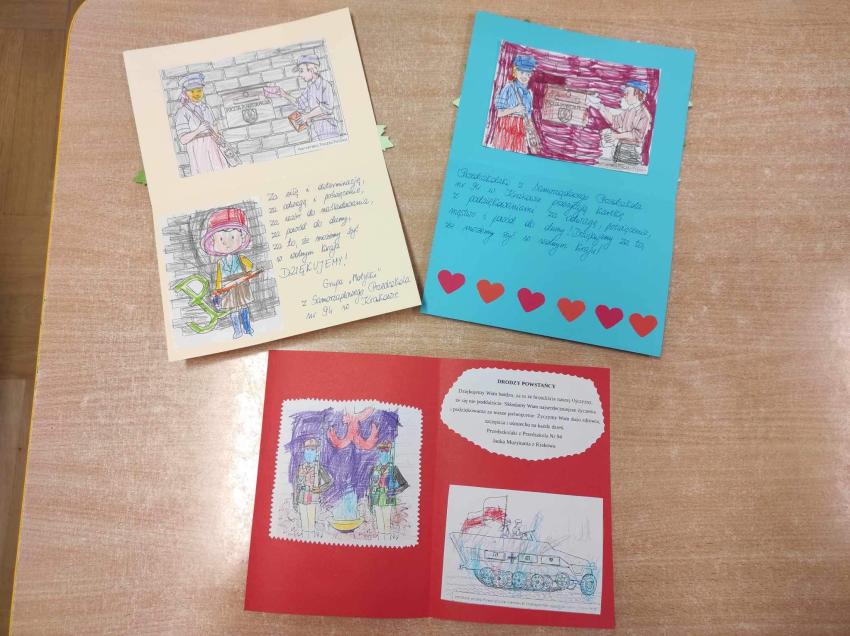 W ramach akcji "Serce za odwagę" dzieci z grupy 1 i 2 przygotowały kartki świąteczne dla weteranów II wojny światowej,