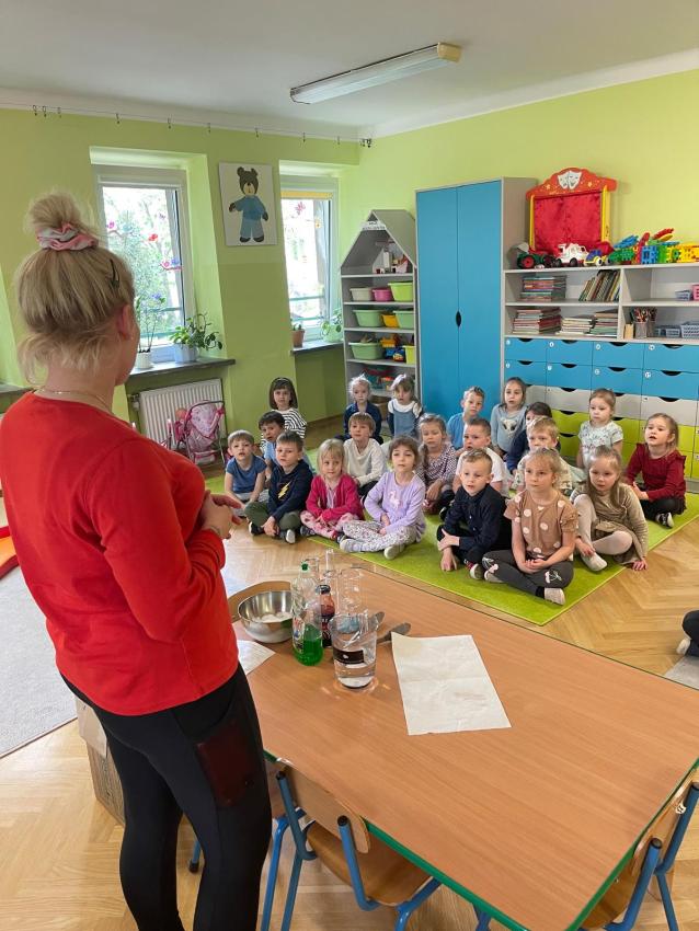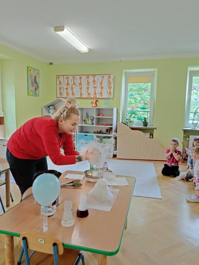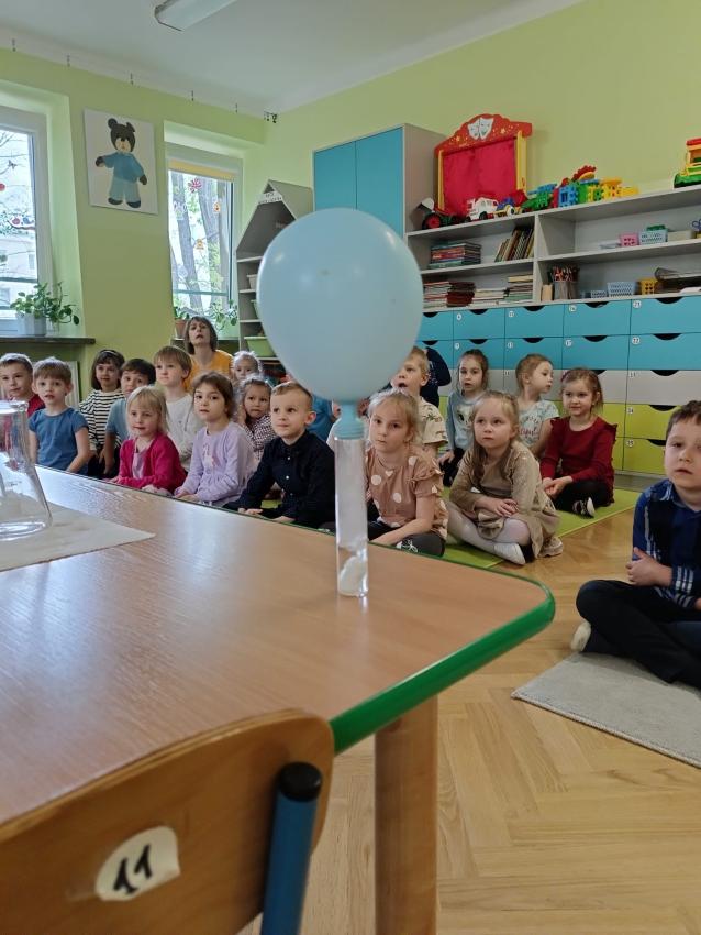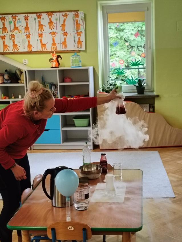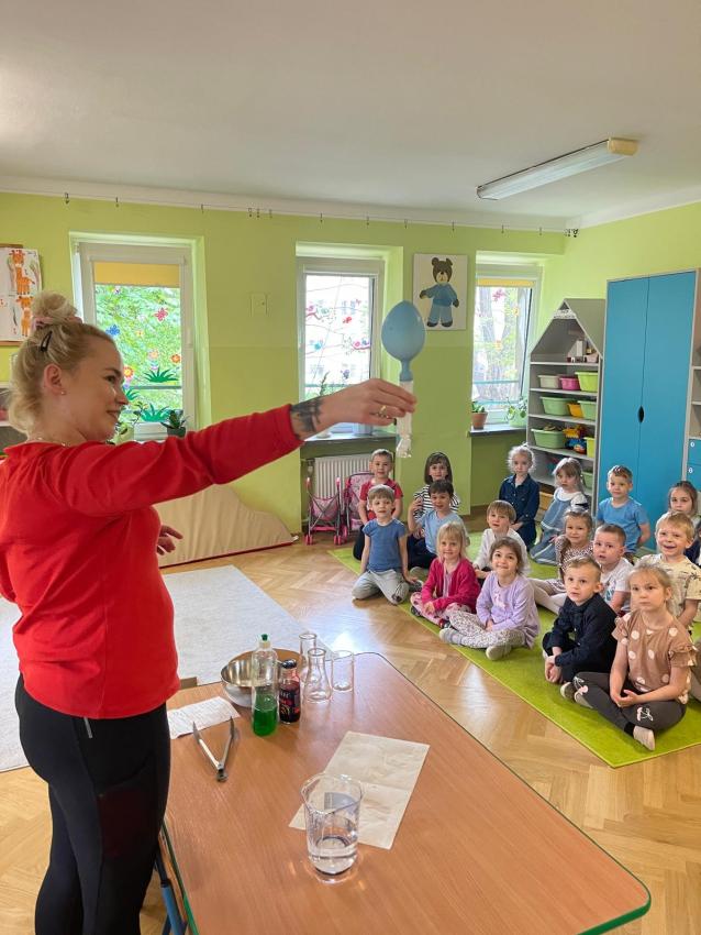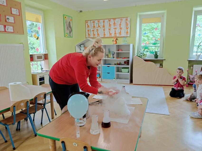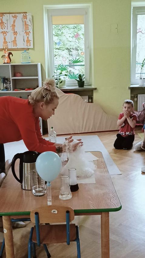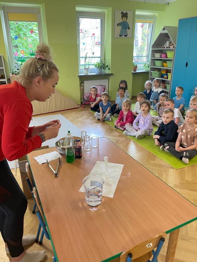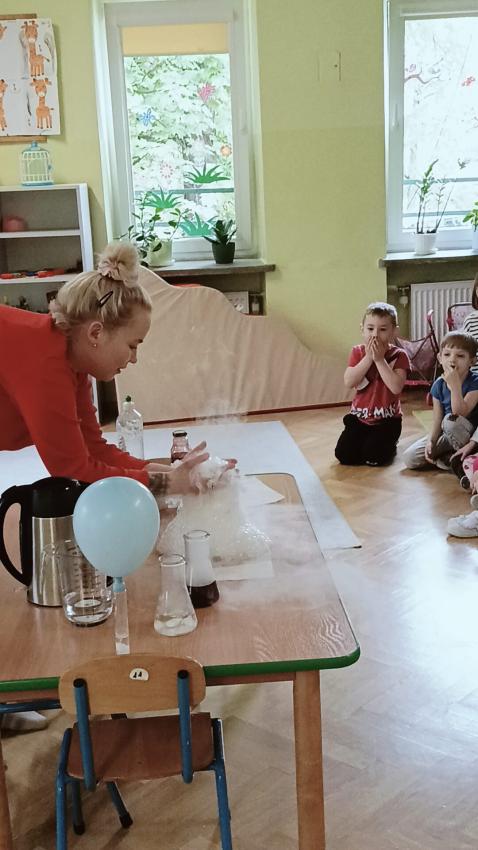 Pokaz naukowy ?Od przedszkolaka do profesora? - grupa Wiewiórek uczestniczyła na ciekawych eksperymentach naukowych.