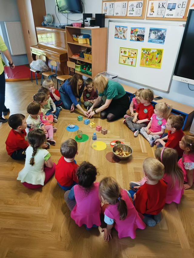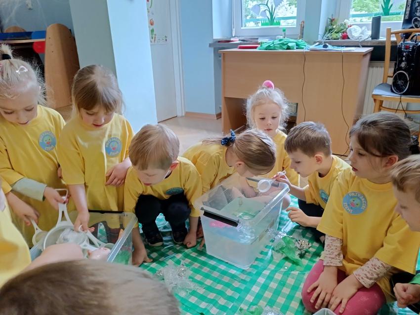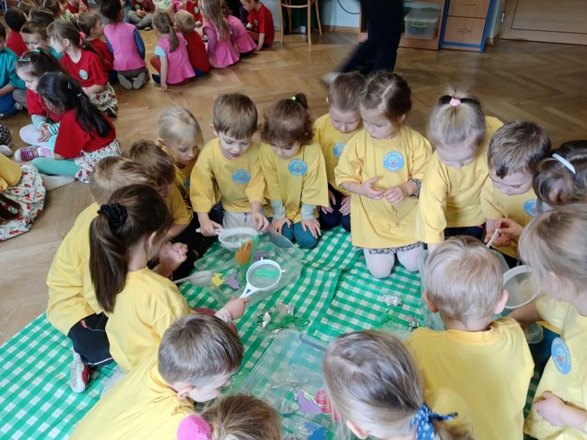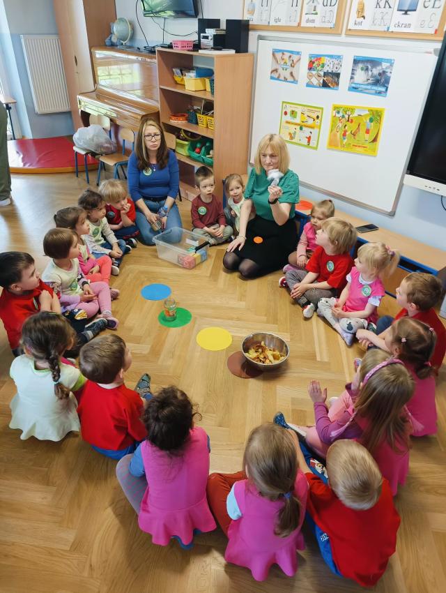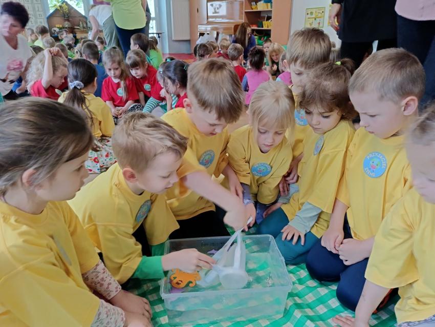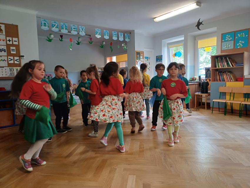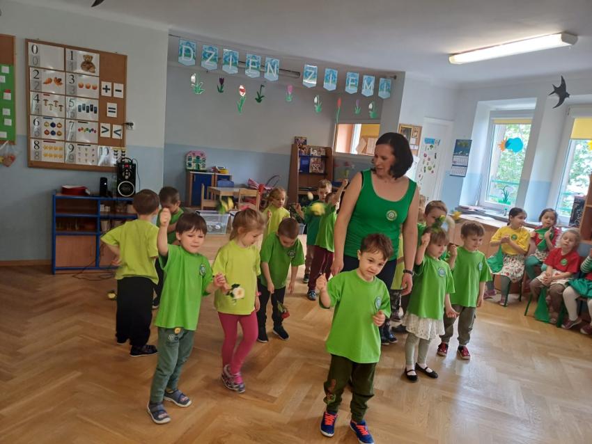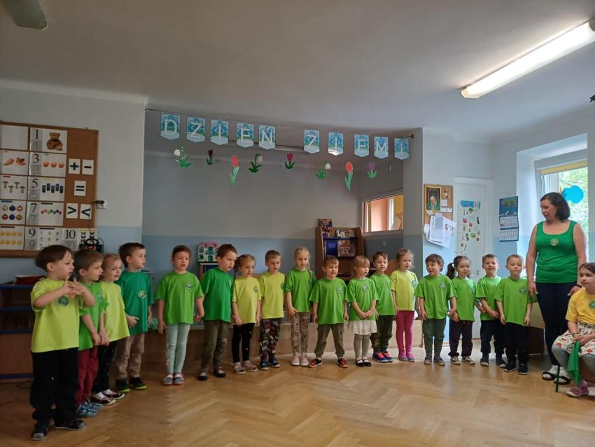 PRZEDSZKOLAKI ZAPREZENTOWAŁY WYSTĘPY ARTYSTYCZNE Z OKAZJI DNIA ZIEMI ORAZ WYKONYWAŁY EKOLOGICZNE ZADANIA.