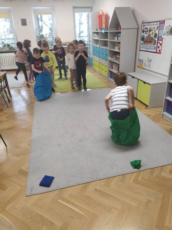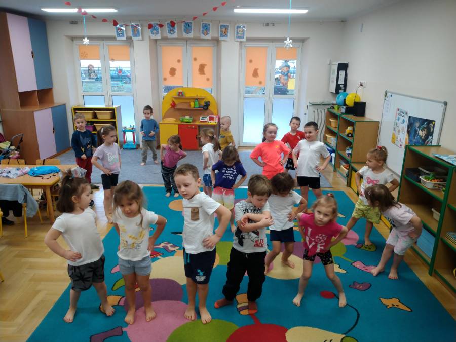 Żabki zrealizowały kolejne zadania z projektu edukacyjnego. Na początku przedszkolaki wykonały rozgrzewkę a następnie przeszły do wykonania zadań przeznaczonych na miesiąc luty.