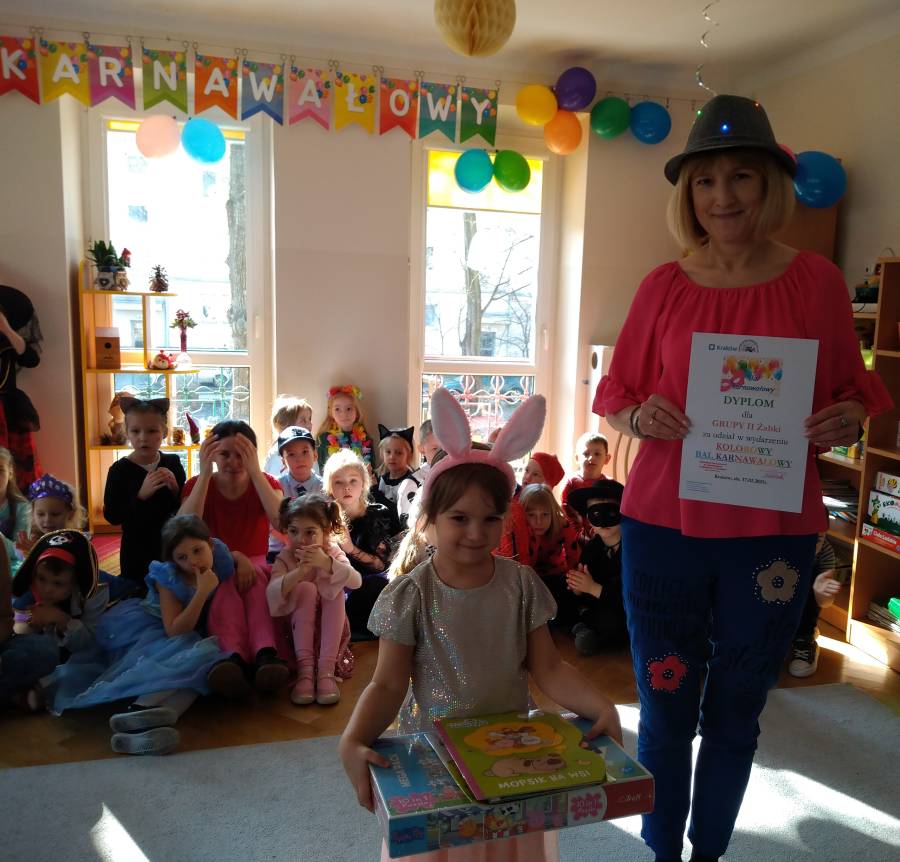 Przedszkolaki w końcu doczekały się zabawy karnawałowej. Wraz z rodzicami przygotowały kolorowe stroje. Na balu karnawałowym nikt się nudził, bo prócz muzycznych pląsów i korowodów dzieci brały udział w konkursach z nagrodami. To był niezapomniany czas dla wszystkich uczestników zabawy zarówno tych małych jak i dużych. Zobaczcie sami.