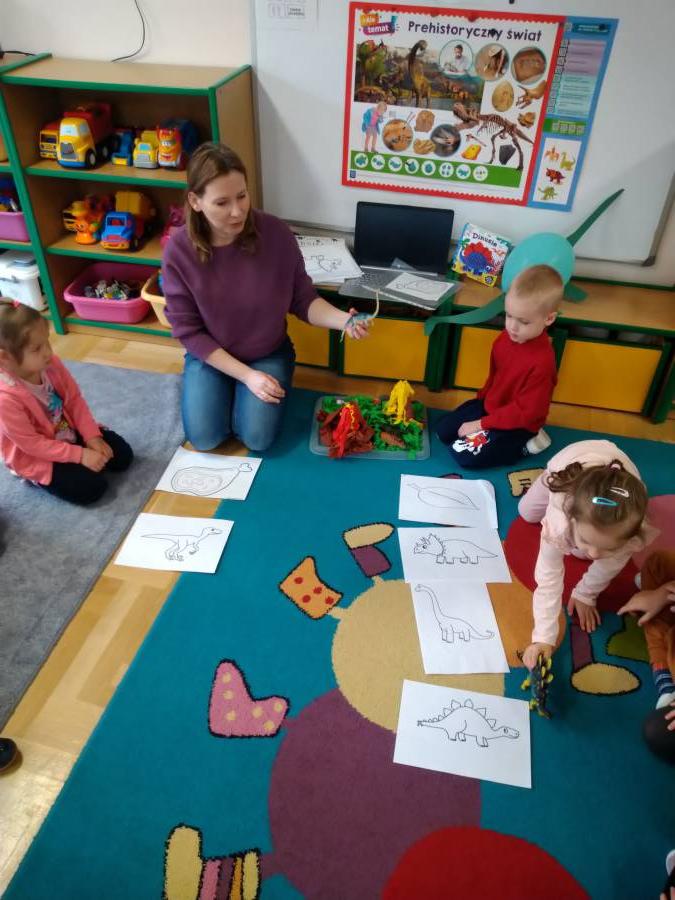 Żabki świętowały Dzień Dinozaura, poznając wybrane gatunki tych zwierząt, dowiedziały się skąd brały się małe dinozaury, czym się żywiły itp. Przedszkolaki obejrzały ciekawy film edukacyjny, z którego dowiedziały się, jak żyły dinozaury, jak wyginęły i kim jest paleontolog.