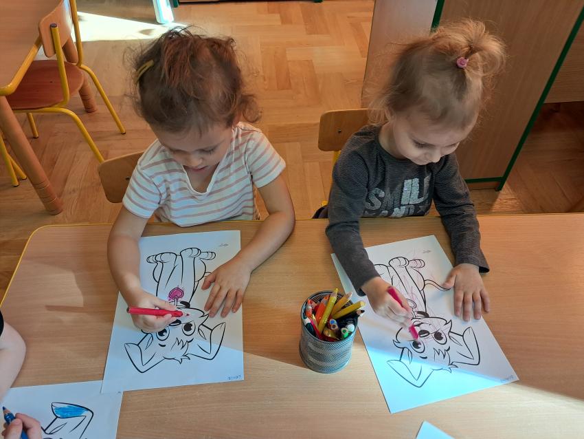 Podsumowaniem zajęć było pokolorowanie obrazka pieska.