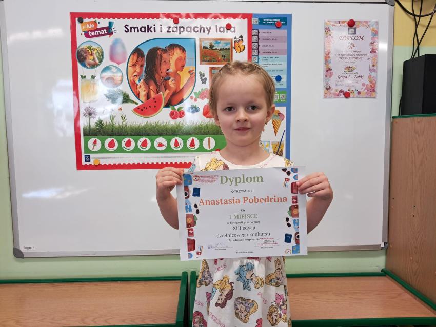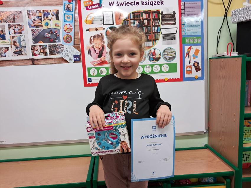 Oleksanda z gr I zdobyła wyróżnienie za udział w konkursie plastycznym pt. "Moja rodzina"