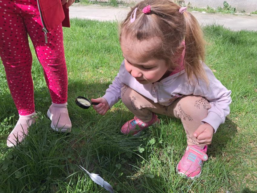 przyrodniczym było wybranie się z Żabkami na spacer, rozdanie im lup i szukanie