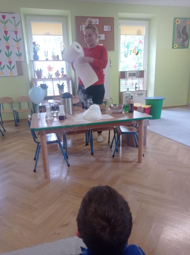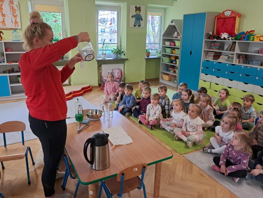 Pokaz naukowy ?Od przedszkolaka do profesora? - grupa Wiewiórek uczestniczyła na ciekawych eksperymentach naukowych.