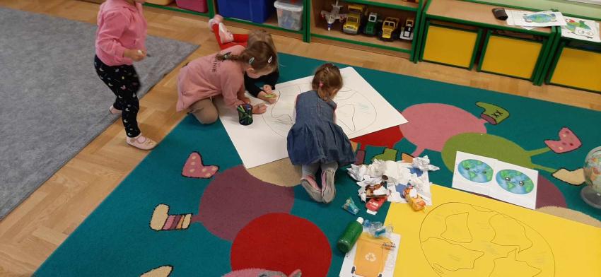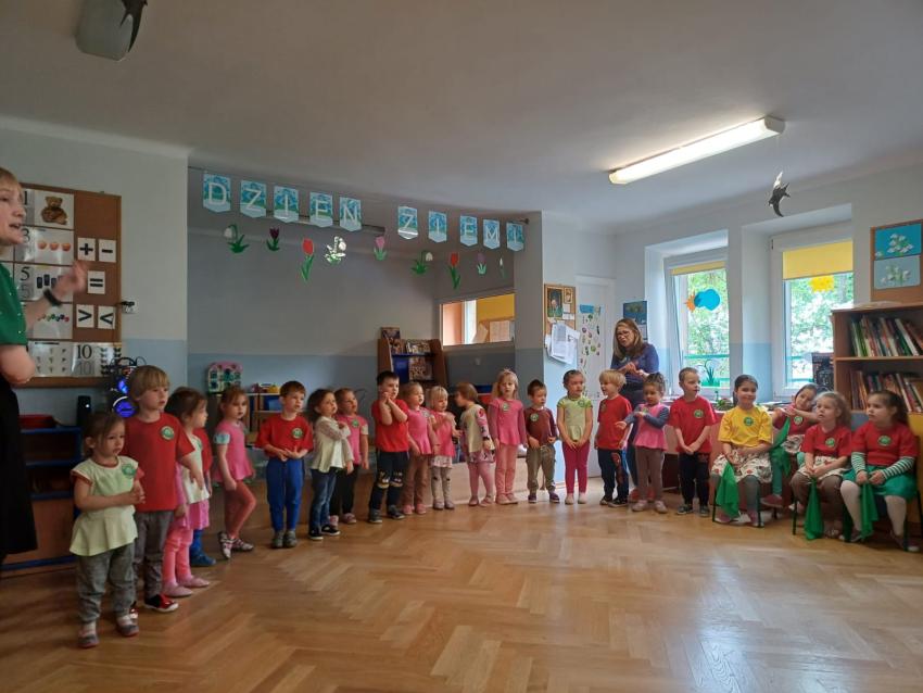 PRZEDSZKOLAKI ZAPREZENTOWAŁY WYSTĘPY ARTYSTYCZNE Z OKAZJI DNIA ZIEMI ORAZ WYKONYWAŁY EKOLOGICZNE ZADANIA.