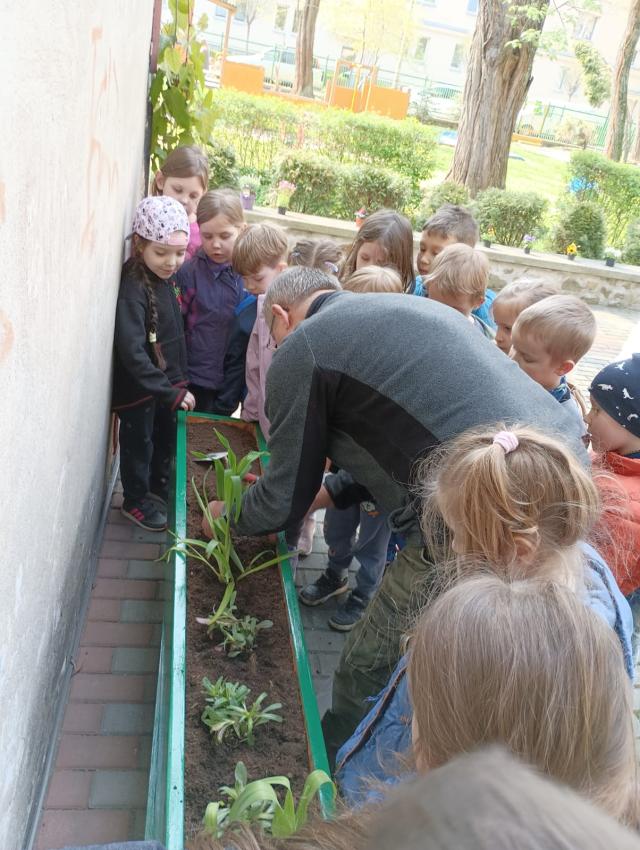 które zostały posadzone w ogrodzie przedszkolnym z okazji obchodów Dnia Ziemi.