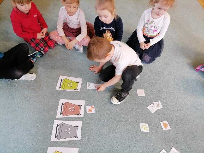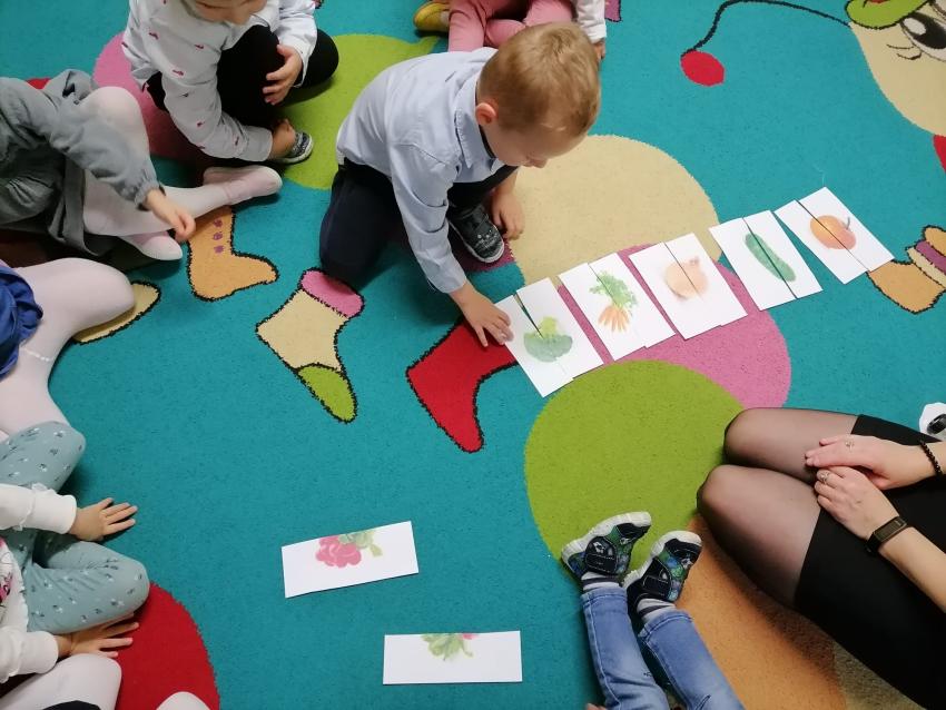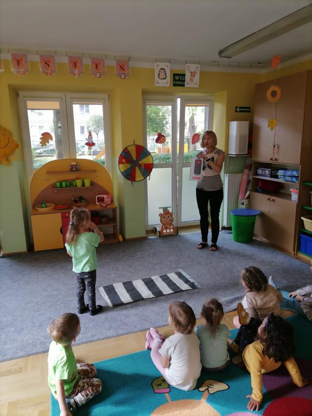Powtarzanie przez grupę Wiewiórek pojęć związanych z orientacją przestrzenną.