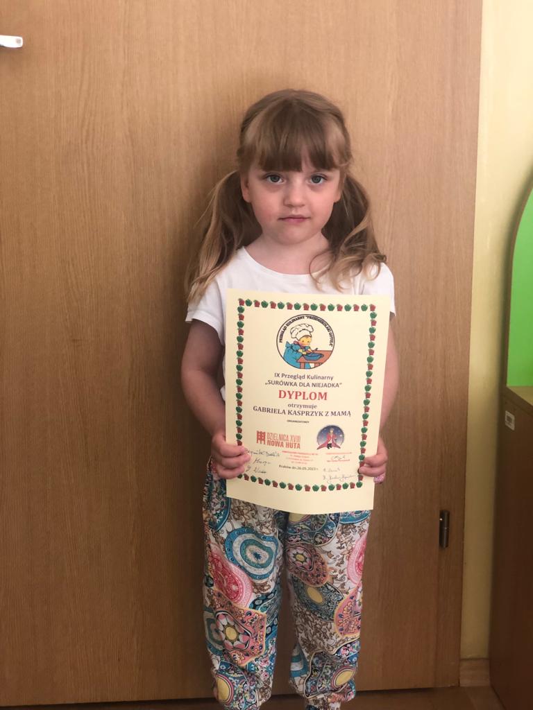 Dyplom dla Gabrysi, która brała udział w IX Przeglądzie kulinarnym ? Surówka dla Niejadka? Gratulacje