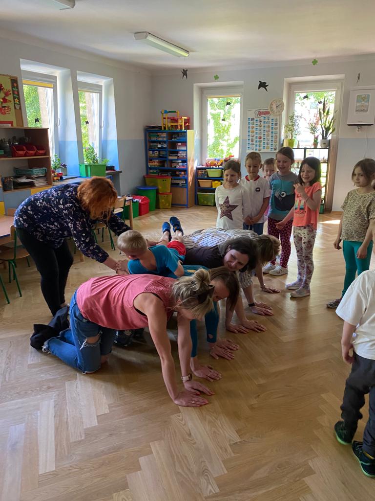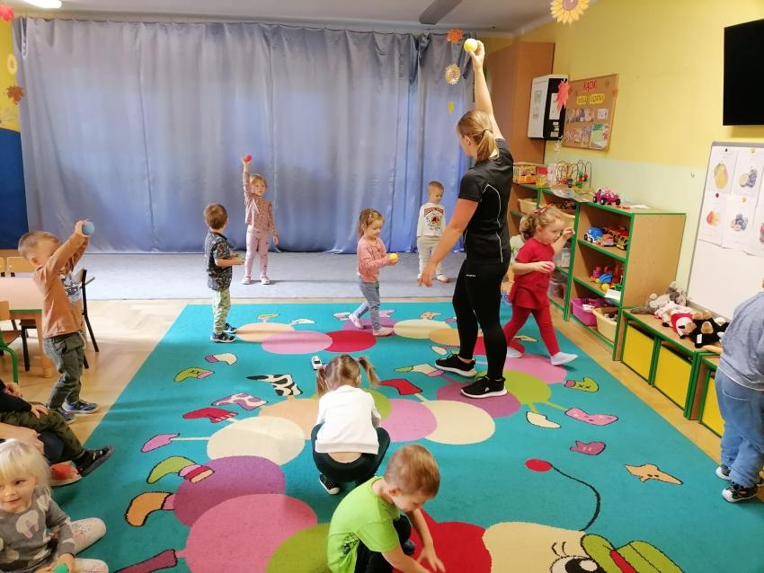 W programie spartakiady było bardzo dużo aktywności sportowej dzieci i pracowników przedszkola .